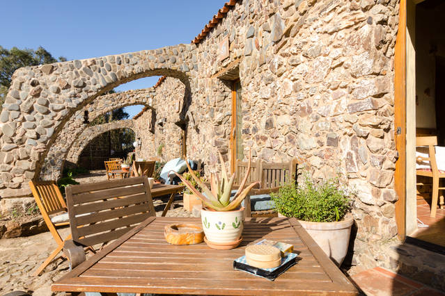 Esta increíble casa casera está recién renovada y ubicada en nuestra pequeña granja donde cultivamos verduras y árboles frutales. La casa está hecha de tierra apisonada y piedras, situada a pocos metros del hermoso río de Seixe, rodeada de verdes colinas y campos. El valle es muy tranquilo y lleno de animales como vacas, caballos, cabras, burros, cerdos y ovejas. ¡En los días calurosos puedes darte un chapuzón refrescante en el río o visitar la increíble playa a solo 6 km de distancia!