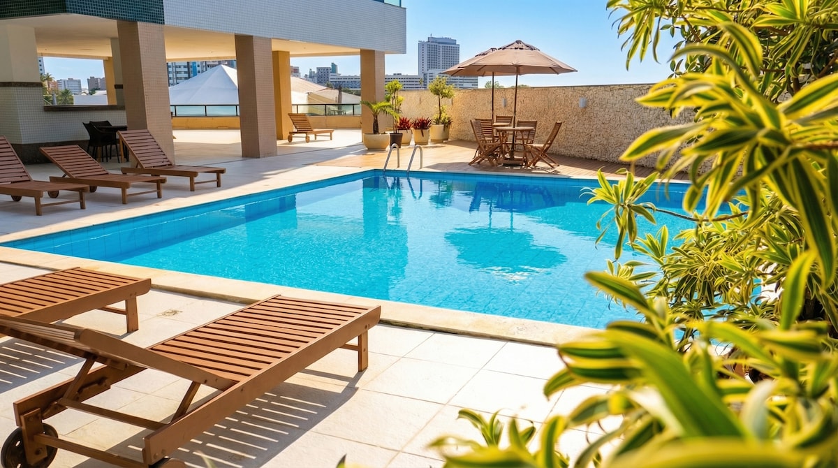 Apartamento decorado y moderno ubicado en el circuito de carnaval Barra-Ondina y cerca del Faro de Barra. Cuenta con 2 habitaciones equipadas con aire acondicionado, wifi disponible, recepción abierta las 24 horas, estacionamiento gratuito y servicio de limpieza diario. Edificio con zona común para los huéspedes equipado con piscina para adultos y niños, pista deportiva, sauna, zona de barbacoa y un centro comercial en la planta baja que consta de panadería, restaurante, salón de belleza y barbería, etc.