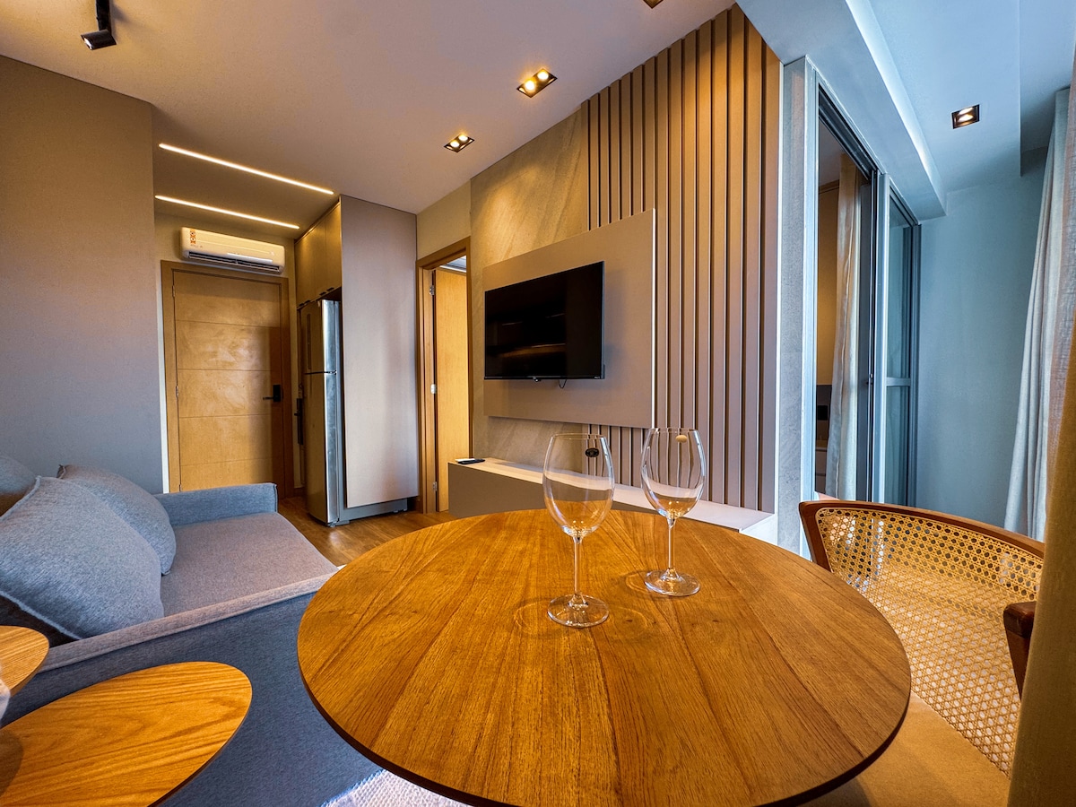 Managed by @Insider.Bahia - Apartment with sea view, a few steps from Farol da Barra beach, with cozy and very elegant decor. Bedroom and living room apartment, with air conditioning, perfect space for the home office with high-speed wi-fi, large and cozy balcony, fully equipped American-style kitchen. Apt has a free parking space. Located close to the "Farol da Barra" fort, beaches, museums, restaurants and bars, the space is an invitation to the beauties of Salvador.