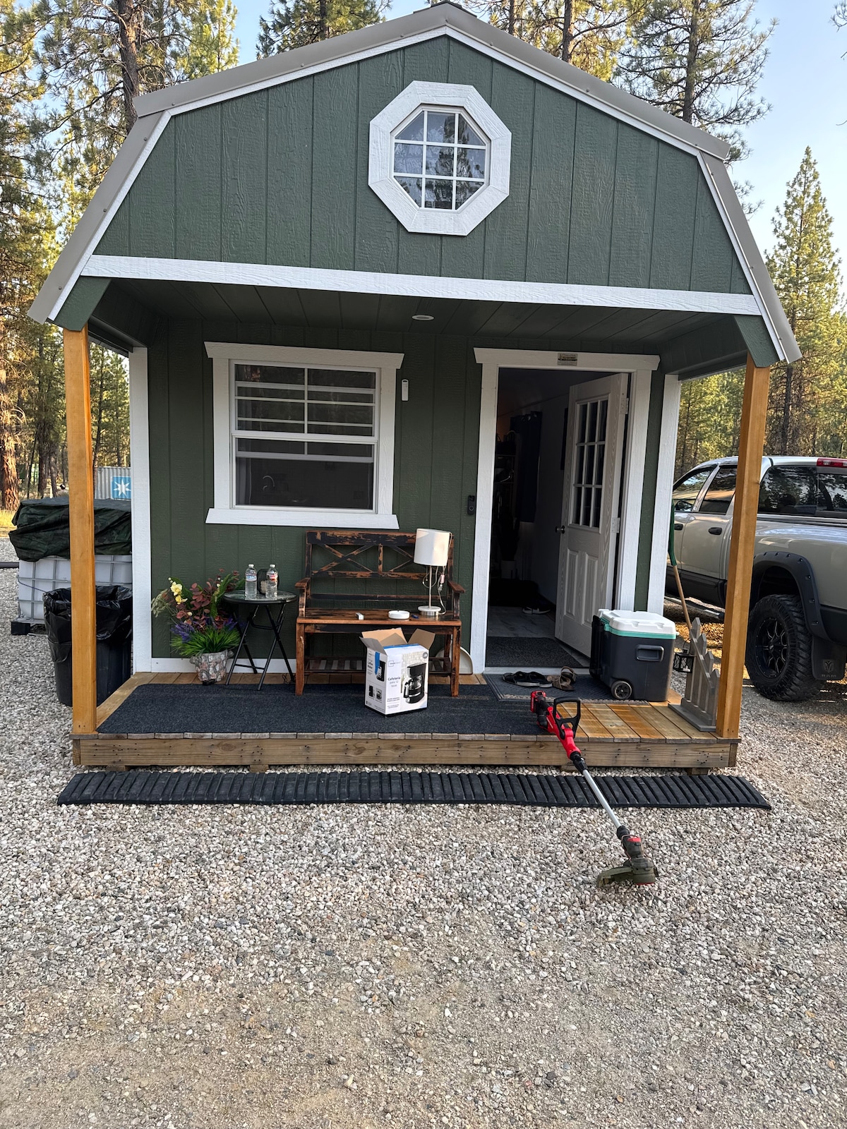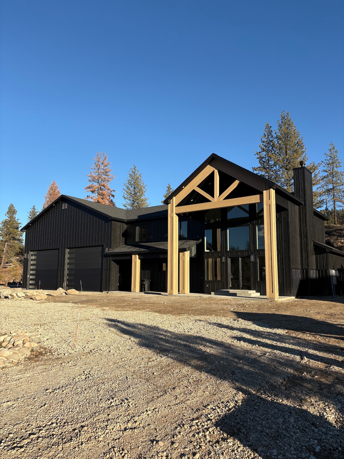 Mountain cabin on the South Fork Boise River, nestled in the National Forest. Endless UTV, hiking, and motorcycle trails. Soak in nearby hot springs. Stunning views, wildlife, and unforgettable stargazing. Gather around the firepit—great for groups or romantic getaways. World-class fly fishing. Pets welcome with fee. 100% solar-powered off-grid escape. Security cameras on the loft deck, garage corner, and window monitor driveway and fuel tanks.