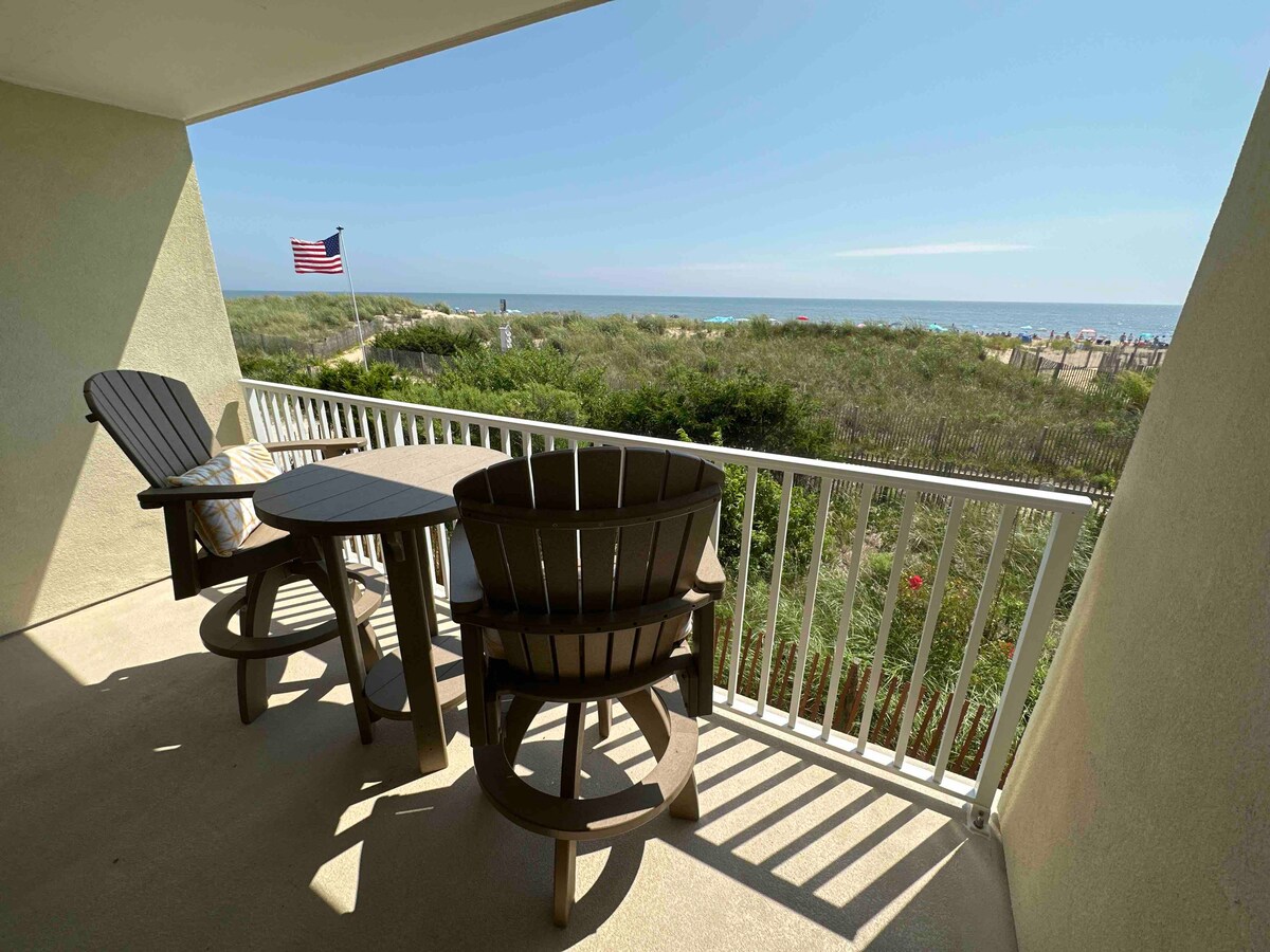 ¡Te damos la bienvenida a nuestro condominio en la playa de Fenwick Island! A menos de un minuto a pie hasta que tus pies se hundan en la hermosa arena de la playa de Delaware. Apartamento de 3 dormitorios y 2 baños completos bellamente decorado, balcón con vistas a la playa y cochera. Perfectamente situado en la tranquila isla de Fenwick, en la codiciada Bunting Ave. Paseos marítimos, go-carts, minigolf a 5 minutos a pie. Apreciamos nuestro encantador y pequeño hogar lejos del hogar, y esperamos que tú también lo hagas. A partir del 23 de agosto de 2025, las sábanas se incluirán en los gastos de limpieza.
