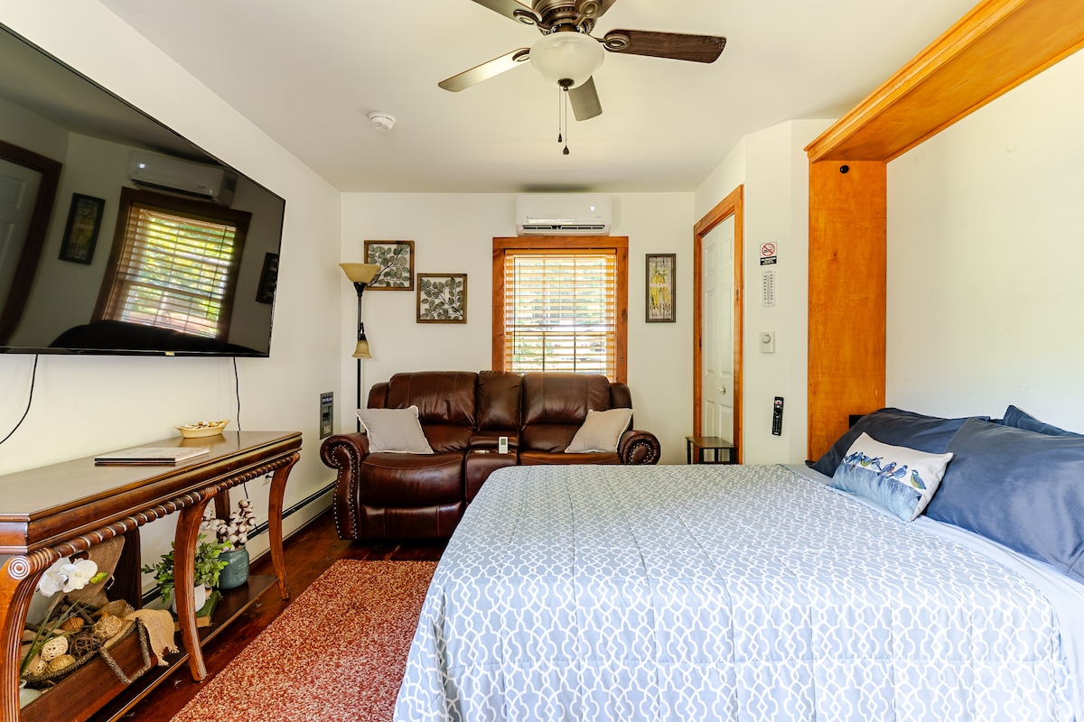 The Porch at Fairystone es tu hogar lejos de casa. Esta casa de vacaciones de 1 dormitorio y 1 baño cuenta con un gran concepto abierto con sala de estar, cocina y comedor, todo en una gran habitación. A través de una hermosa puerta de granero encontrarás tu dormitorio y un armario con lavadora y secadora. Disfruta de un hermoso comedor al aire libre con sillas para 3 y una parrilla para cocinar tus comidas favoritas. A pocos minutos del parque estatal Fairystone, Goose Point y el puerto deportivo, la presa y el lago Philpott.
