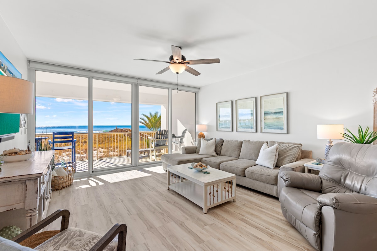 ¡Bienvenido al condominio «Salty Beach»! ¡Un 1 dormitorio recién anunciado y recién decorado frente al golfo, con capacidad para 6 personas! Primer edificio junto al muelle de Navarra. Ubicado en el cuarto piso. Hay 2 ascensores. A poca distancia a pie de restaurantes cercanos. Increíbles vistas al golfo, al amanecer y al atardecer. Internet de alta velocidad con televisores inteligentes. ¡No te pierdas mis reseñas de Superanfitrión! Servicio de playa diario gratuito: (ESTACIONAL) 1 de marzo - 31 de octubre Incluye dos sillas, una sombrilla y una mesa plegable. Incluye tabla de surf de remo o kayak durante 1 hora diaria.