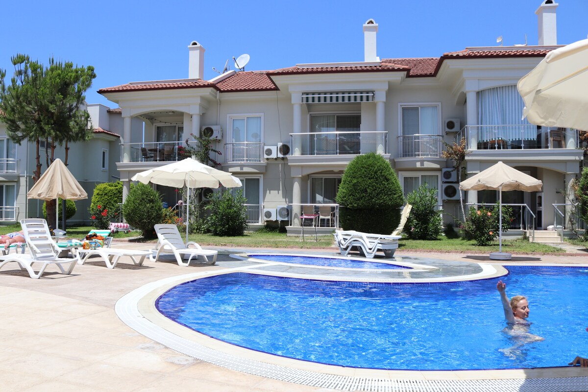 Modern 2BR duplex located 3km from Calis Beach. Features a large shared pool, kids' park, en-suite bedrooms, AC in all rooms, and fast Wi-Fi. Perfect for families seeking a peaceful yet central stay in Fethiye.