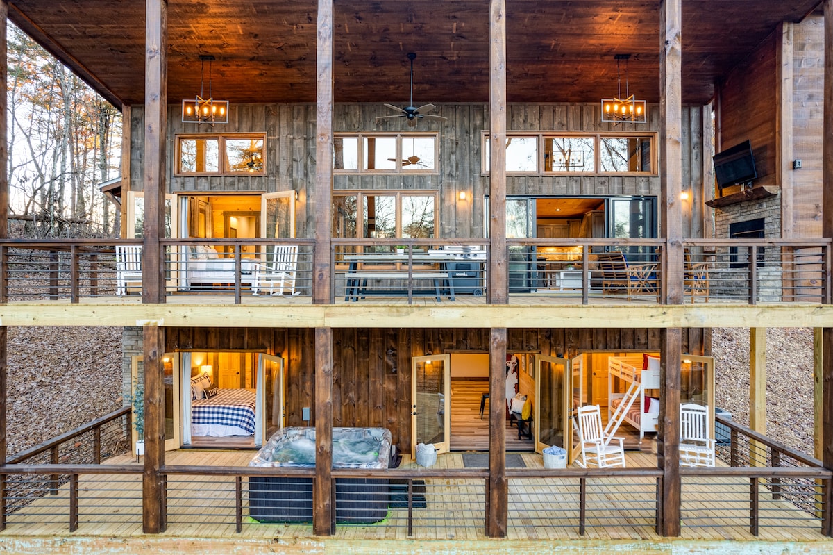 • Nueva casa de lujo de 3300 pies cuadrados en el norte de Georgia • ¡Ubicación! ¡A 12 minutos del centro de Blue Ridge y a 7 de McCaysville! • Fácil acceso a Mercier Orchards • 3 dormitorios (2 King) MÁS dormitorio adicional/sala de juegos (capacidad para 11 personas como máximo); 3 baños y medio • 2 cubiertas. Jacuzzi, parrilla de gas. • Techos de la catedral con grandes ventanales • Wifi rápido (200 MB) • 3 chimeneas (1 gas adentro en cada piso, 1 exterior en la cubierta) y fogata • 7 televisores de pantalla plana de alta definición. • Sala de juegos con sala de juegos, mesa de ping-pong y TV de 65pulgadas • Wet Bar con nevera y fregadero