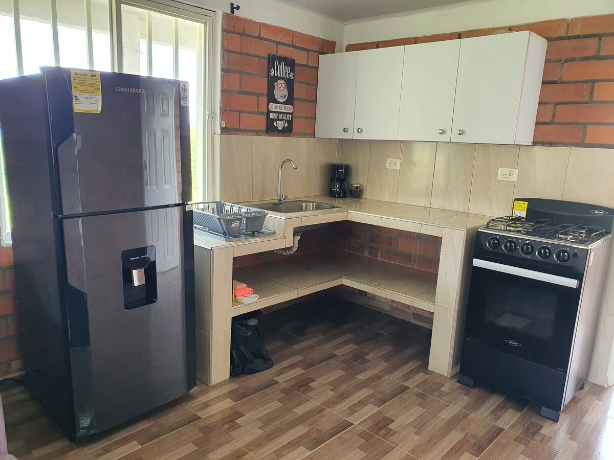 Conecta con la naturaleza en esta escapada inolvidable. En el corazón del eje cafetero a 40 min de Pereira de armenia de Cartago. A 30 min de filandia, del parque del café. No gastes tu dinero en estancias costosas, te ofrecemos un alojamiento espectacular, de donde podrás salir a conocer el eje cafetero, sin gastos en exceso, cocina,lavadero, lavadora, agua caliente, rio cerca en la misma propiedad. es una casa en material muy nueva, con todas las comodidades y con espectaculares vistas.