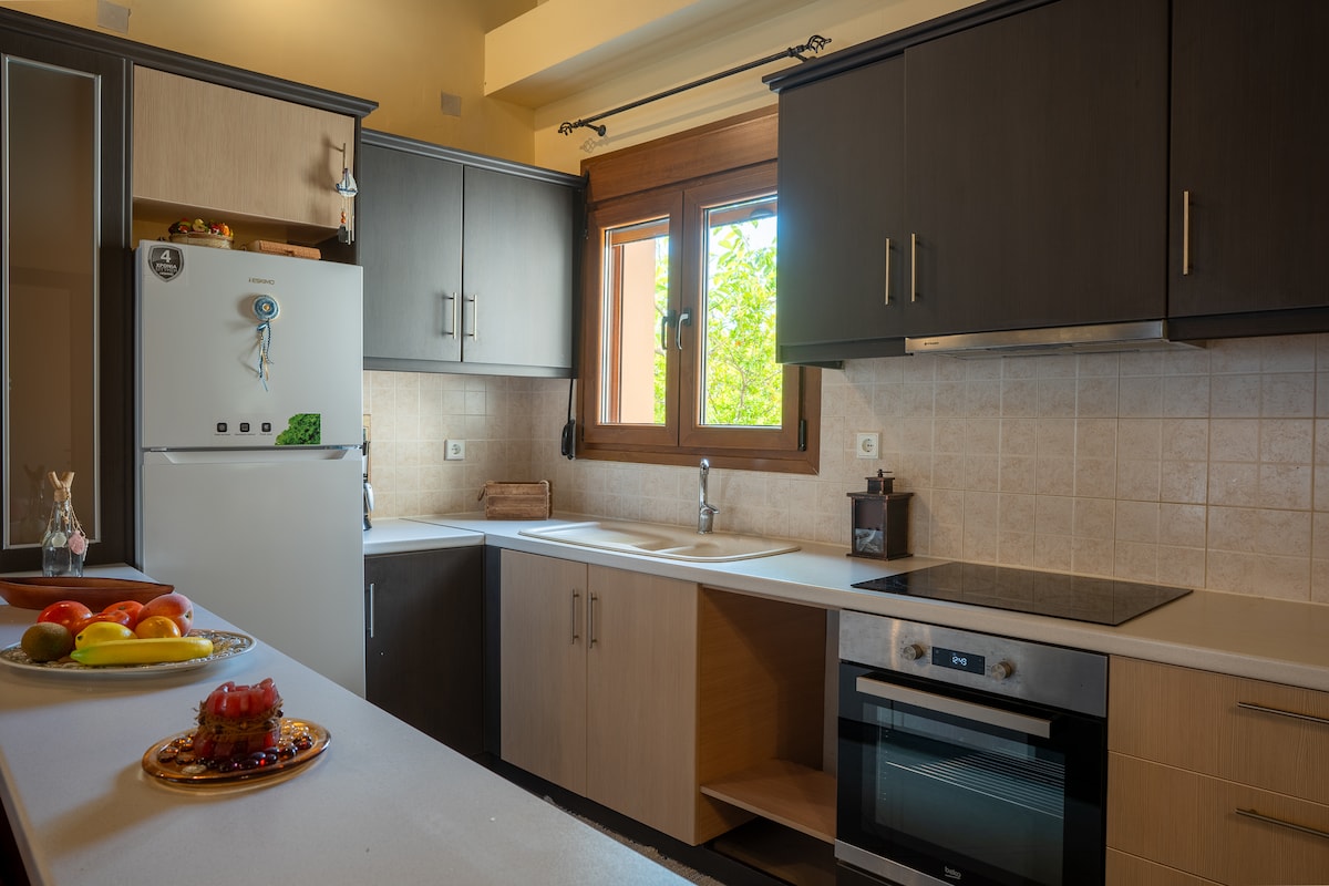 Villa Walnut con vistas espectaculares y jardín, Assos