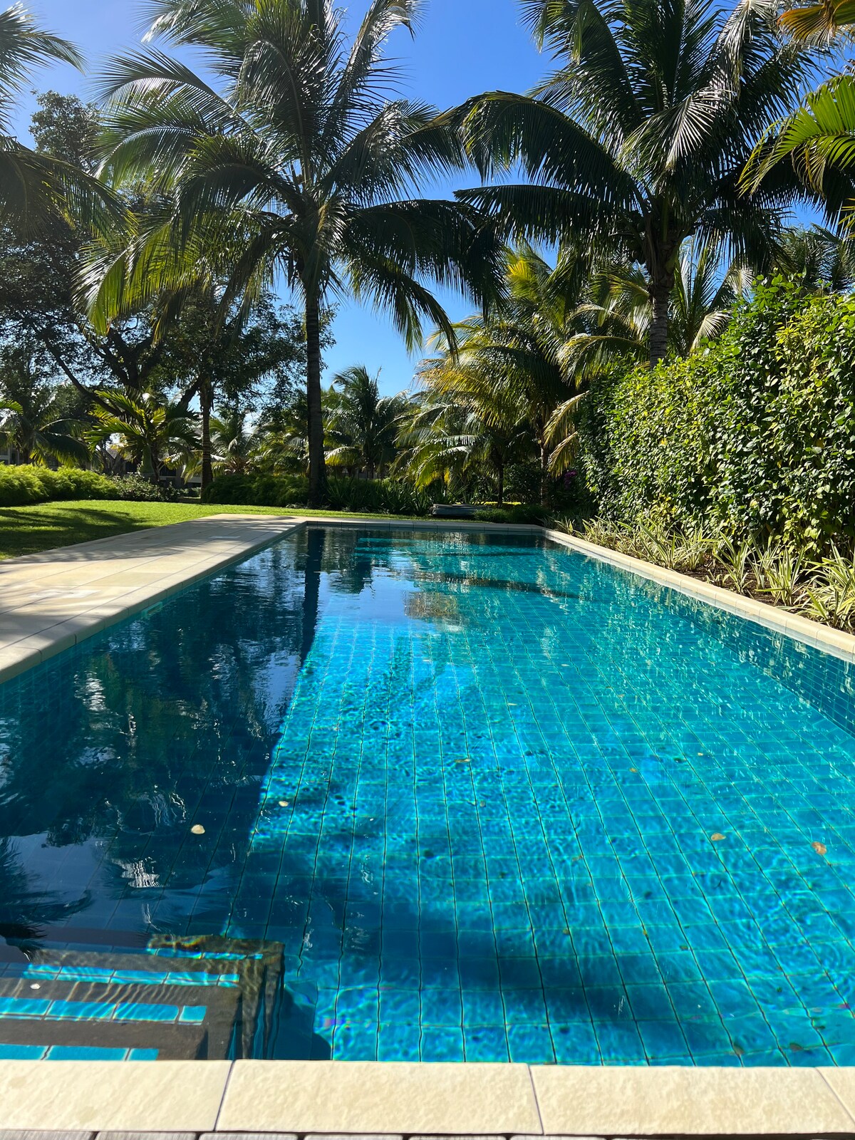 Nuestra casa de playa tiene capacidad para 8 personas en 4 dormitorios dobles ( una planta baja ) además de una cuna. JUSTO EN un hermoso tramo largo y seguro de arena blanca, en la región más deseable de Mauricio, cerca de restaurantes y bares. Opción de comida casera caliente entregada, niñera, terapeuta y conductor a tarifas locales bajas. Jardín privado cerrado frente a la playa, dos zonas de comedor al aire libre, estacionamiento privado en un desarrollo seguro de dos pisos frente a la playa. Una de las 26 unidades privadas que comparten una gran piscina con servicios y jardín.