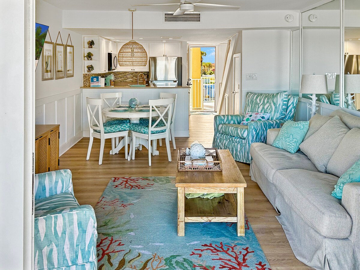¡EN EL CENTRO DE LA CIUDAD! ¡A POCA DISTANCIA A PIE DE TODO! ¡Justo enfrente de la playa! Nuestro acogedor apartamento de playa Flagler totalmente amueblado está situado en el centro de la ciudad y a solo 3 manzanas del icónico muelle de playa Flagler. Puedes ver y oír el océano desde la puerta principal y está a 20 segundos a pie de la playa. Este es un acceso a nivel del suelo de un dormitorio con un sofá plegable. Estaciona directamente delante de tu unidad y camina a todas partes durante el fin de semana. LBTR#28785. Cocina completa y renovación del baño 7/24.