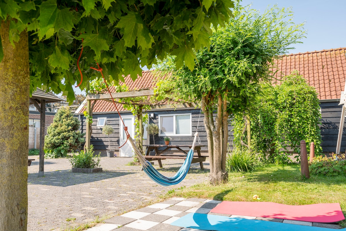 Establece tu base para explorar la hermosa naturaleza que rodea el norte de Holanda. The Bee es un refugio de 5000 m2 que consta de un apiario, un gran jardín y parque infantil, una cafetería con terraza, alquiler de barcos y bicicletas y casas de alquiler vacacional/excursionistas. El departamento está totalmente equipado con 2 dormitorios, gran sala de estar/ cocina y ducha/baño privado. Disfruta de una barbacoa familiar en tu propia terraza o simplemente relájate observando la puesta de sol.