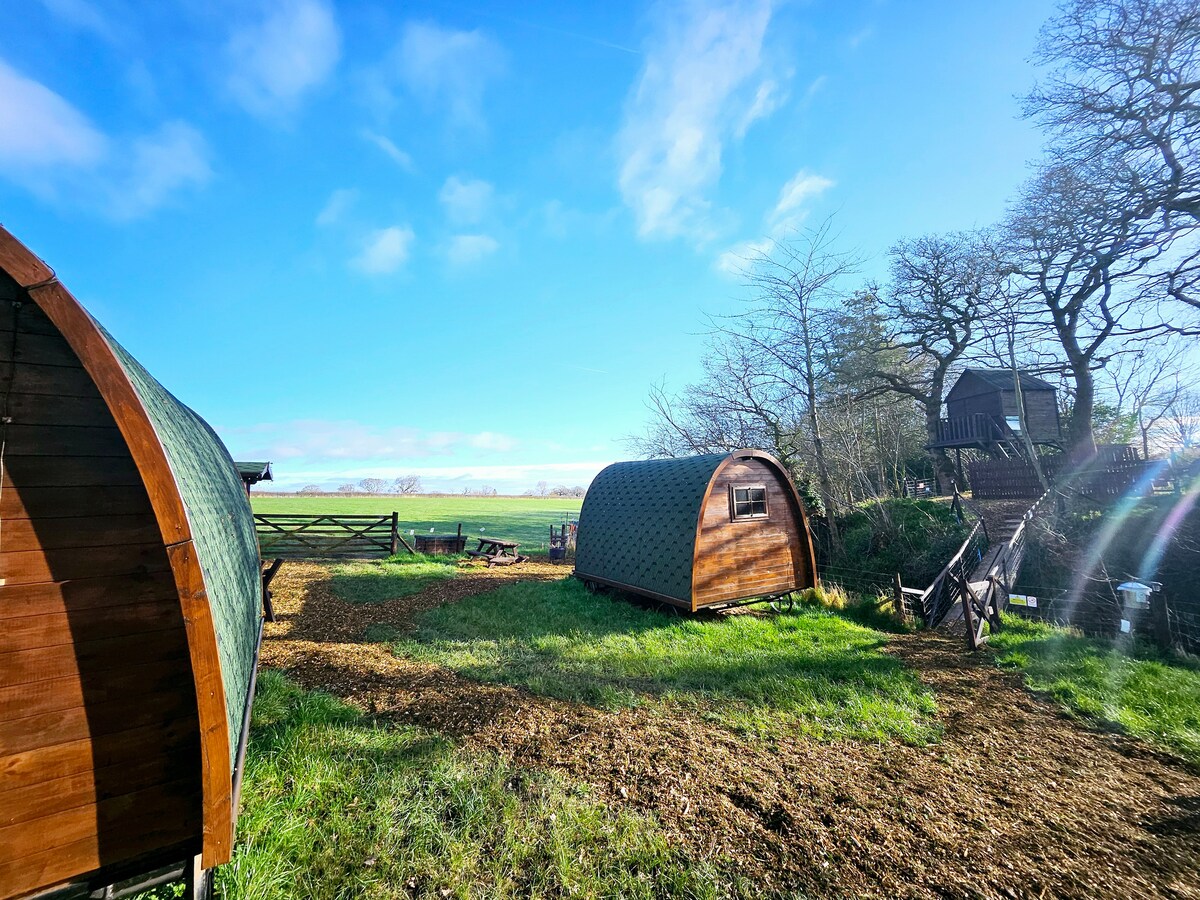 🌿 Vainas de PerryTree – Higher Kinnerton Escápate a 27 acres de campiña tranquila junto a un arroyo de agua dulce. Perfecto para parejas, familias o grupos tranquilos que buscan naturaleza y comodidad fuera de la red. Disfruta de la cabaña de juegos comunitaria, la casa del árbol, el bar, las fogatas, la barbacoa, la cocina al aire libre y las modernas instalaciones de lavado. Una cápsula glamping con capacidad para 4 personas. Con una ubicación ideal en la frontera entre Gales del Norte e Inglaterra, a solo 5 minutos de la A55 (J36). Estancias en grupo: airbnb.co.uk/h/perrytreegroups