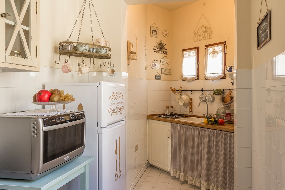 Está en el primer piso y es el antiguo piso noble. Tiene vistas al jardín de la casa y está decorado con pinturas y muebles del siglo XIX. Un pasillo conecta el gran salón, los dos dormitorios, la cocina y los dos baños. Hermoso jardín italiano accesible para todos los huéspedes del edificio.