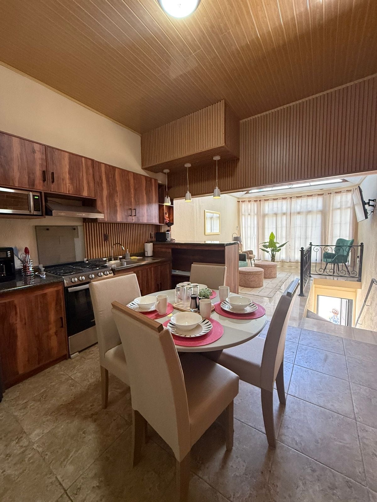 Este elegante alojamiento es ideal para viajes en grupo. Ideal para considerar el vieje de toda tu familia en un lugar elegante, con fácil acceso a restaurantes y centros comerciales a 2 Km de la isla de Flores 53 Km de parque Tikal, a 2 km del aeropuerto, direccion con acceso a servicio de comida a domicilio. Alojamiento: Nos encontramos en el centro de la ciudad, un lugar seguro para caminar o hacer ejercicos en las mañanas. Puede utilizar todos los accesorios de la casa sin costo adicional.