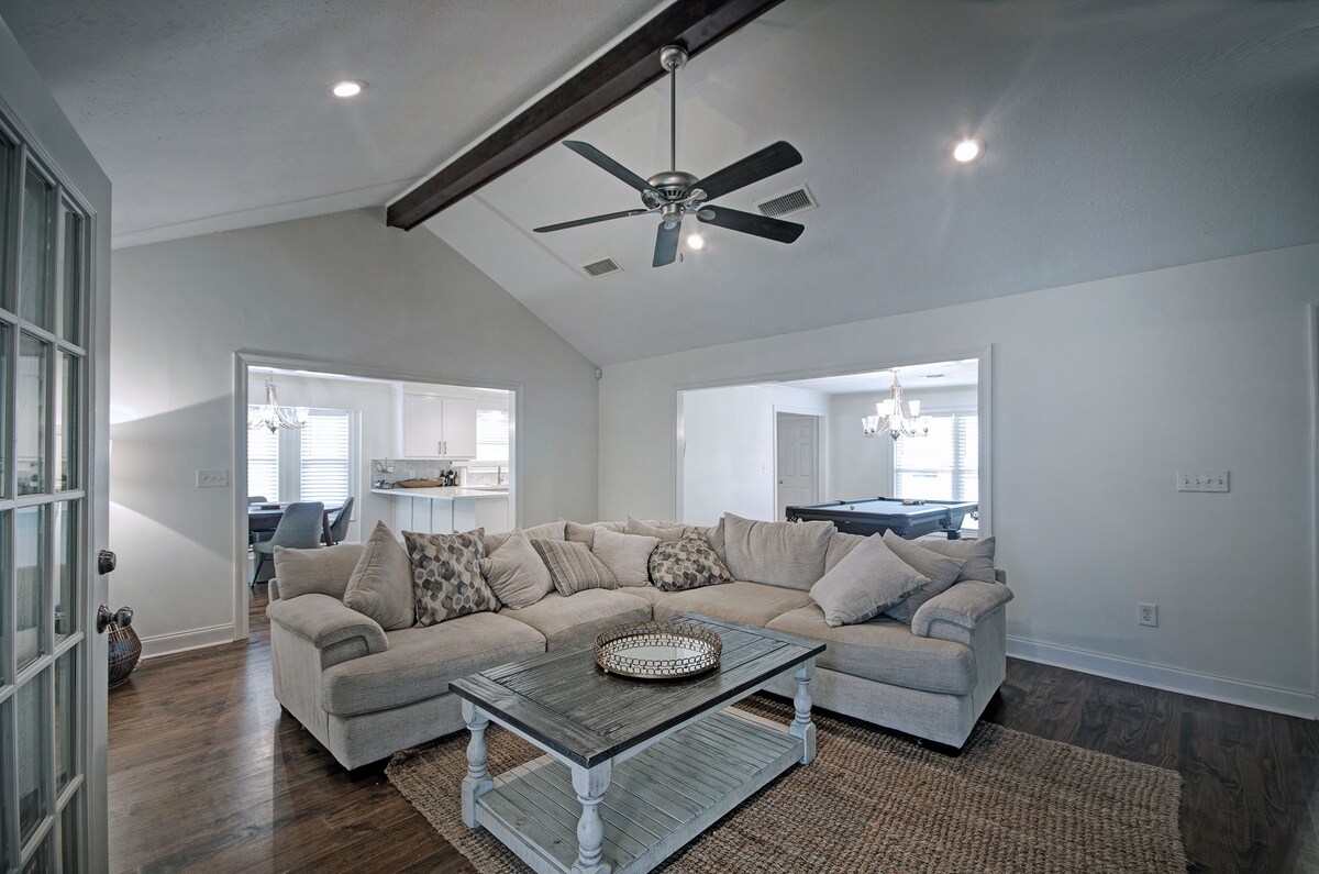 ¡Ven y disfruta del lujo y la diversión en nuestro Airbnb totalmente equipado! Nuestra espaciosa propiedad de 3 dormitorios y 2 baños puede alojar cómodamente hasta 9 huéspedes con su cama tamaño king, queen, litera y cama nido con colchones de espuma viscoelástica. Sumérgete en un entretenimiento sin fin en nuestra sala de juegos con 4500 juegos de arcade, futbolín, hockey de mesa, tejo y mucho más. La cocina totalmente equipada y la parrilla de gas al aire libre permiten cocinar y cenar cómodamente. ¡Reserva ahora y crea recuerdos duraderos con tus amigos y familiares!
