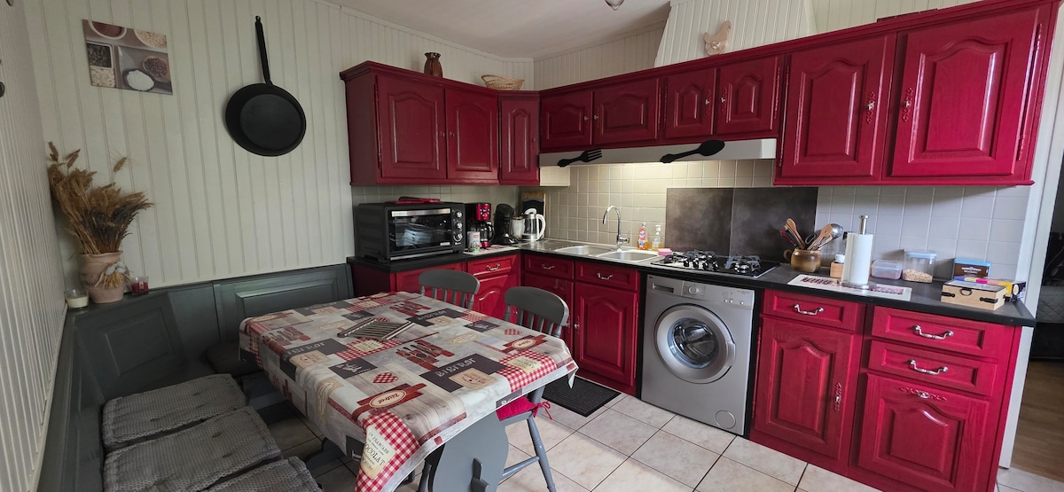 Bienvenidos a la casa rural Pierre & Modernité, un refugio idílico que combina el encanto rústico con el confort contemporáneo. Ubicada en el corazón del campo, esta casa de piedra ofrece una experiencia única donde la tradición y la modernidad se encuentran armoniosamente. Con sus hermosas vigas de roble y su moderno interior, la casa ofrece un amplio salón con un sofá cama y una cocina totalmente equipada