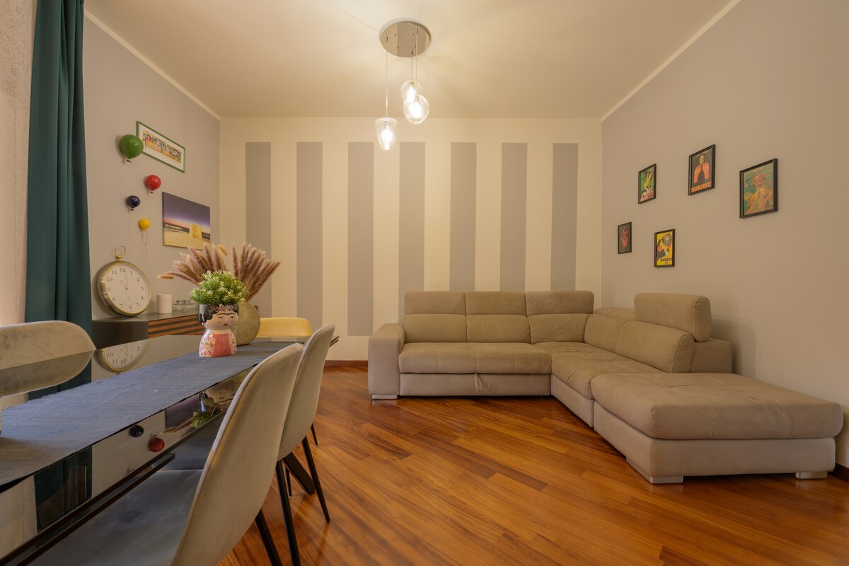Elegante apartamento en edificio de cimentación situado en zona peatonal en el paseo principal de Latina a pocos pasos de la Piazza del Popolo (plaza principal), zona llena de tiendas, bares, locales y cines. El apartamento de 90 m² es muy silencioso, tiene 2 baños y 2 dormitorios dobles, uno de ellos con baño, y una sala de estar con cocina abierta. Fácilmente accesible desde los aparcamientos situados a unos 100 metros, desde los taxis (50 metros) y desde las paradas de autobús. Cerca de todos los edificios históricos de arquitectura racionalista.