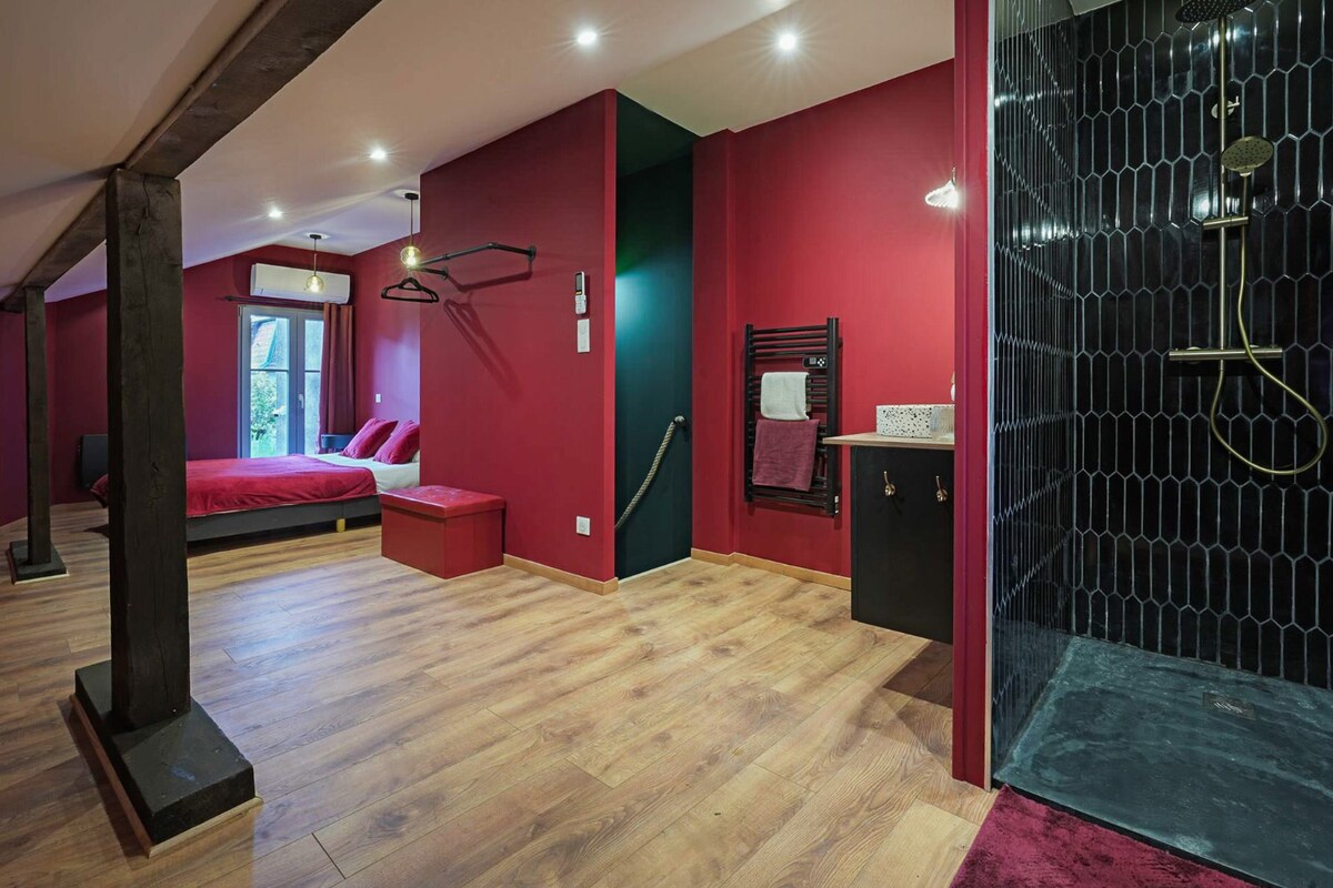 Hermoso dúplex totalmente equipado en una antigua granja, a 10 minutos de Luxeuil les Bains. En la planta baja hay una bonita sala de estar, cocina y aseo. Arriba hay un dormitorio encantador, con una cama de calidad (180 x 210 cm) y un baño. Todas las ventanas tienen una vista impresionante sobre el campo. Desde la terraza se pueden ver vacas, ciervos y busardo ratonero. Disfruta de los Mil Estanques, la arquitectura antigua de los balnearios o la Notre Dame du Haut de Corbusier. El dúplex es una excelente base para hacer excursiones a pie y en bicicleta.