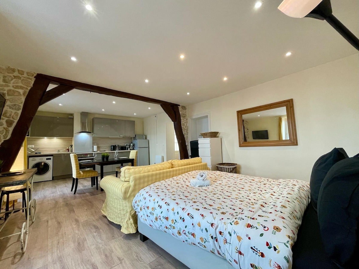 Gran estudio con una habitación separada por una partición acristalada; en el centro de la ciudad, en un pequeño callejón sin salida tranquilo, a 5 minutos a pie de la zona comercial y a 10 minutos del castillo. Mucho encanto para esta base ideal para los excursionistas y los amantes de la escalada y la naturaleza que desean conocer el macizo forestal de Fontainebleau. Este apartamento tiene todas las comodidades: baño pequeño con ducha e inodoro, cocina funcional, sala de estar y dormitorio.