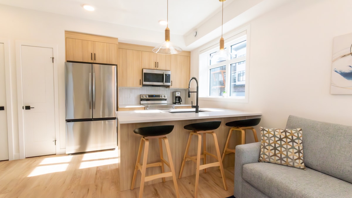 Welcome to our stunning 1-bedroom, 2 queen bed condo in vibrant Seton, Calgary! This modern, AC equipped, pet-friendly home features unique artwork and stylish décor. Enjoy a dedicated workspace with a 34" Dell monitor and high-speed 150 Mbps WiFi—ideal for business or leisure stays. Relax in the cool comfort of air conditioning, or unwind on the plush sofa. Walk to trendy restaurants, shops, a cinema, and parks. Just 25 minutes to downtown, Calgary Stampede, and 1.5 hrs to Banff National Park.