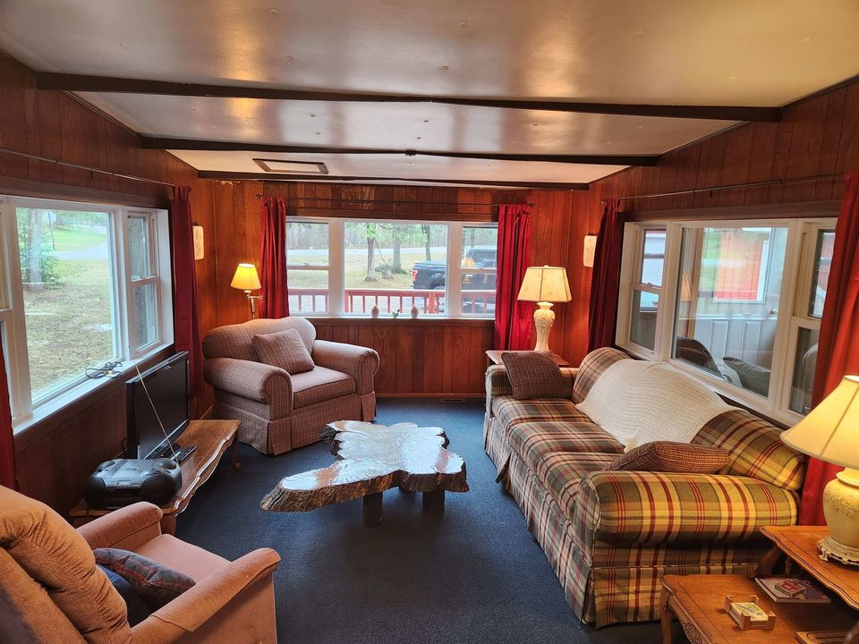 Auténtica cabaña de troncos con todas las comodidades necesarias para una relajante escapada a la naturaleza. Privacidad, espacio para pasear. Enorme zona de fogatas con abundantes asientos. Buena pesca. Espectacular follaje otoñal. Acceso directo en invierno a senderos para motos de nieve o permanece cómodamente en el interior frente a la chimenea. Hay algunas especies de taxidermia montadas en las paredes. Juegos de mesa. Tres televisores. Dish Network e internet. No es un buen lago para nadar, pero hay otros lagos para nadar y navegar a 5-10 minutos.