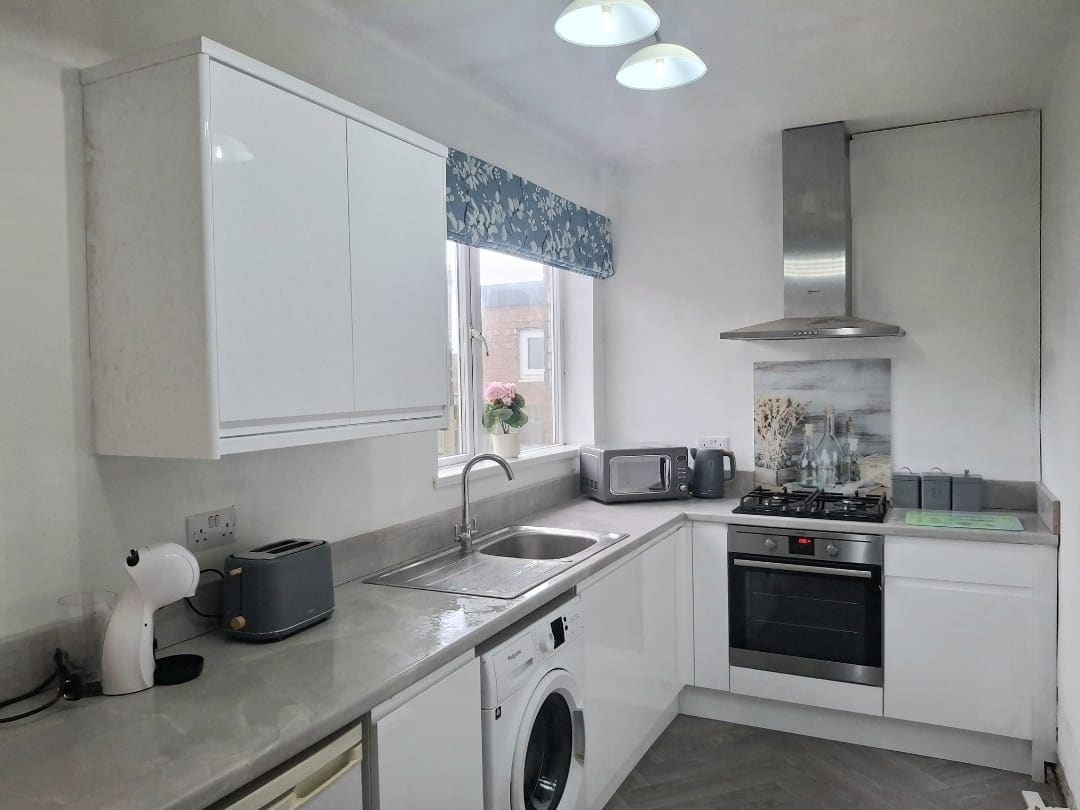 Amplio apartamento que consta de dos dormitorios dobles con camas muy cómodas, uno con baño privado con ducha y otro con baño separado que tiene bañera y ducha. Se proporcionan toallas, champú, etc. y secador de pelo. El salón, el comedor y la cocina moderna están en un gran espacio abierto y cuentan con todo el equipamiento que puedas necesitar. Elegantemente decorado y a un tiro de piedra de Gosforth High Street. Aparcamiento gratuito con un permiso proporcionado durante tu estancia. Hogar perfecto lejos de casa.