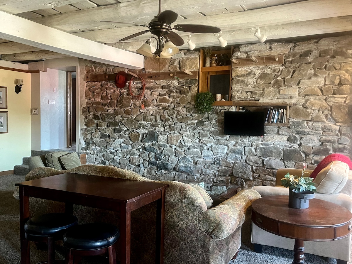 Desconecta de la rutina en este alojamiento único y relajante en el corazón del condado de Lebanon, rodeado de tierras de cultivo rurales y de la comunidad amish. Disfruta sentado en el porche delantero o en el balcón privado escuchando a los pájaros, o en el invierno acogedor hasta la chimenea con una taza de café. Este albergue ofrece una cocina completa, sala de estar, baño y un dormitorio privado en el primer piso. El segundo piso tiene un dormitorio privado, un dormitorio loft, un baño y una habitación adicional para niños con 2 camas individuales.