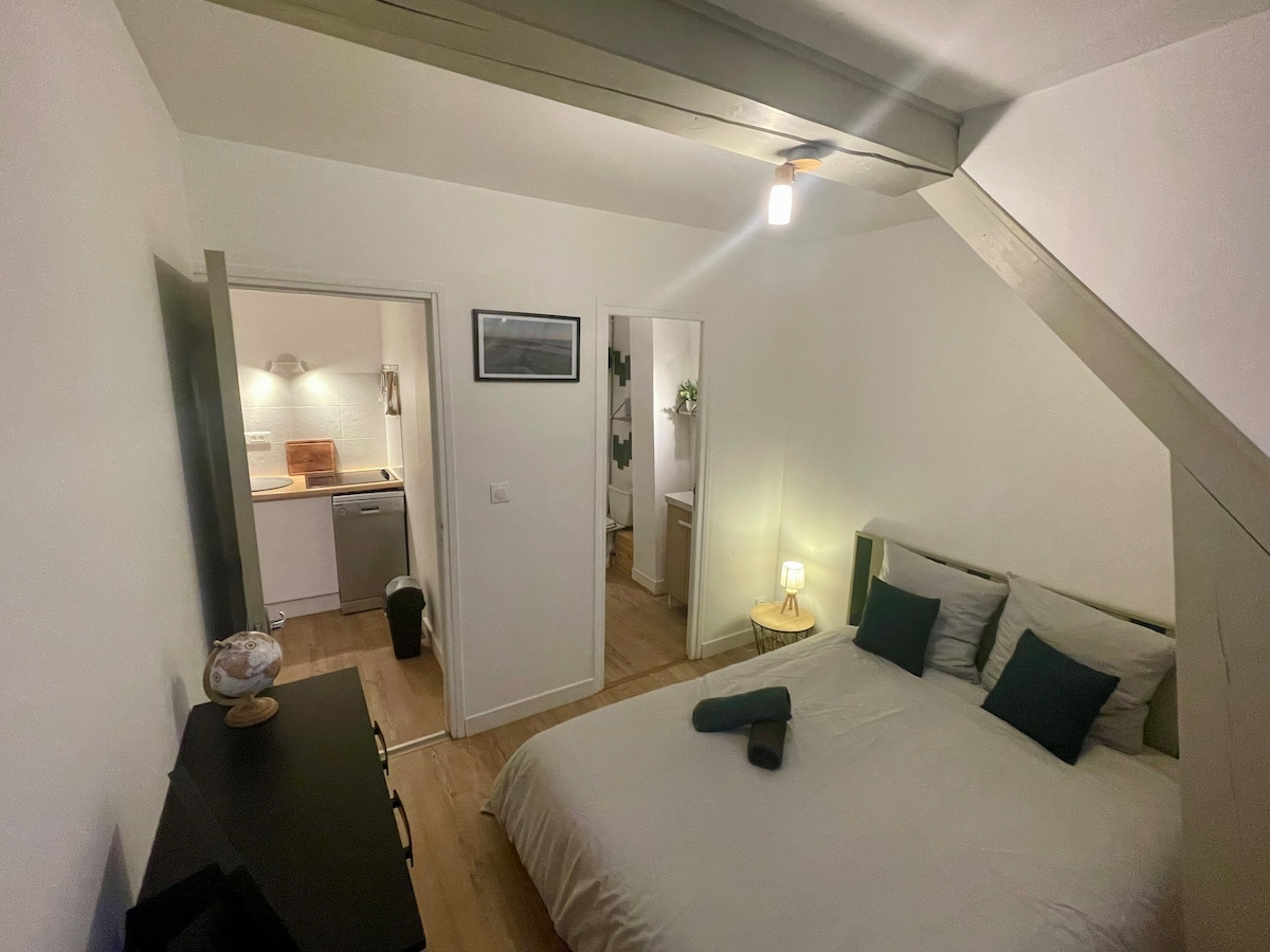 Disfrute de un fin de semana cómodo en este tranquilo alojamiento junto al mar. Situado a 50 metros de la playa de Fort-Mahon, mi estudio de 24 m2 es perfecto para parejas. Disfrute de su proximidad a las tiendas, sus numerosos restaurantes y su plaza de aparcamiento privado. Se proporcionan sábanas y artículos de aseo (toallas, guantes, alfombra de baño). Estudio completamente renovado y aislado con cuidado.
