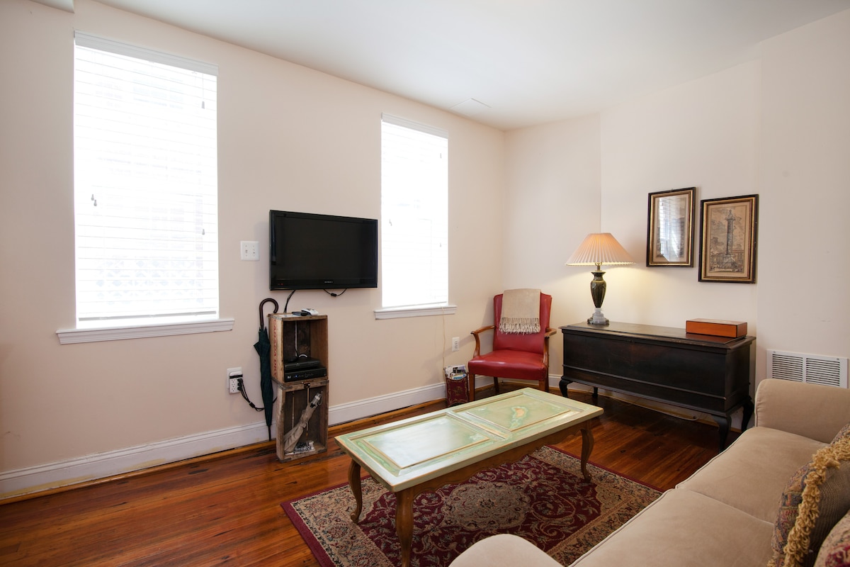 A pocos pasos del puerto interior de Baltimore, Fells Point, Little Italy y el hospital John's Hopkins, este apartamento de un dormitorio totalmente equipado tiene todo lo que necesitas. Esta unidad moderna y contemporánea dentro de una de las casas adosadas históricas de Baltimore (construida en 1850) cuenta con techos altos y hermosos ventanales del suelo al techo. El apartamento incluye cocina completa, baño completo, un dormitorio con espacio de oficina, sala de estar con TV de alta definición y sofá cama, y lavadora/secadora en la unidad. ¡También hay una bicicleta disponible para su uso!