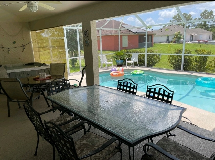 Hotel accommodations with the comforts of home! Clean and beautiful house. Hot tub and pool, full grill Gazebo,patio for cookouts. Beautiful living room area, with a TV and family space. Dedicated dining room space, equipped with everything needed with a spectacular dinner. Kitchen is fully equipped. King , two queen beds. Beautiful full bathrooms. Close to Downtown Fort Myers, Bell Tower Shops, and Fort Myers Beach.