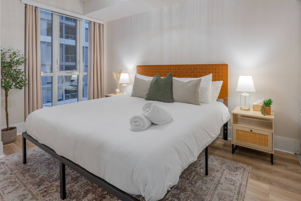 Welcome to the Fort York Flat! This 2 Bedroom, 1 Bathroom space has been thoughtfully renovated using a mixture of modern and contemporary decor to create a relaxing, upscale place to kick back while enjoying everything Downtown Toronto has to offer. Our location and smart lockbox located at the front doors makes checking into the flat easier than ever, no need to worry about fussing with the front desk staff or waiting for elevators.