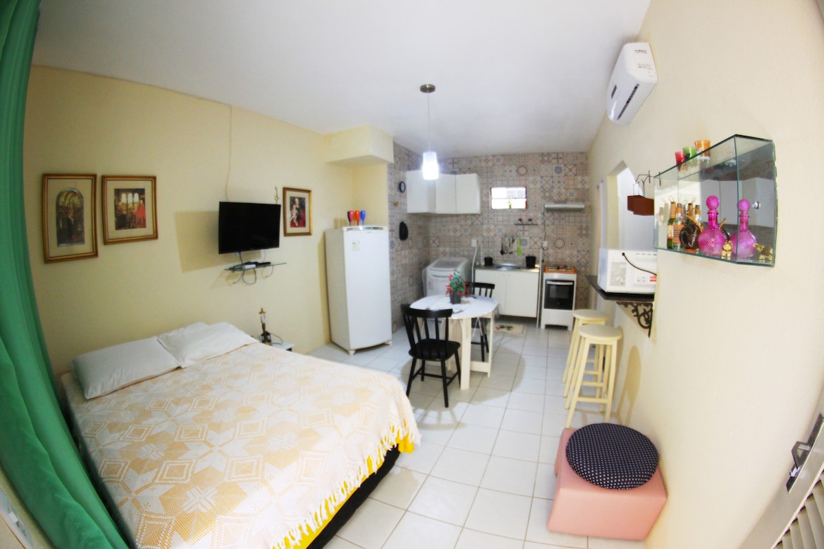 Relaxe neste espaço calmo e cheio de estilo. Kitnete Rosa Casal simples tranquila e muito aconchegante, localizada a 3 minutos a pé da Praia do Futuro
