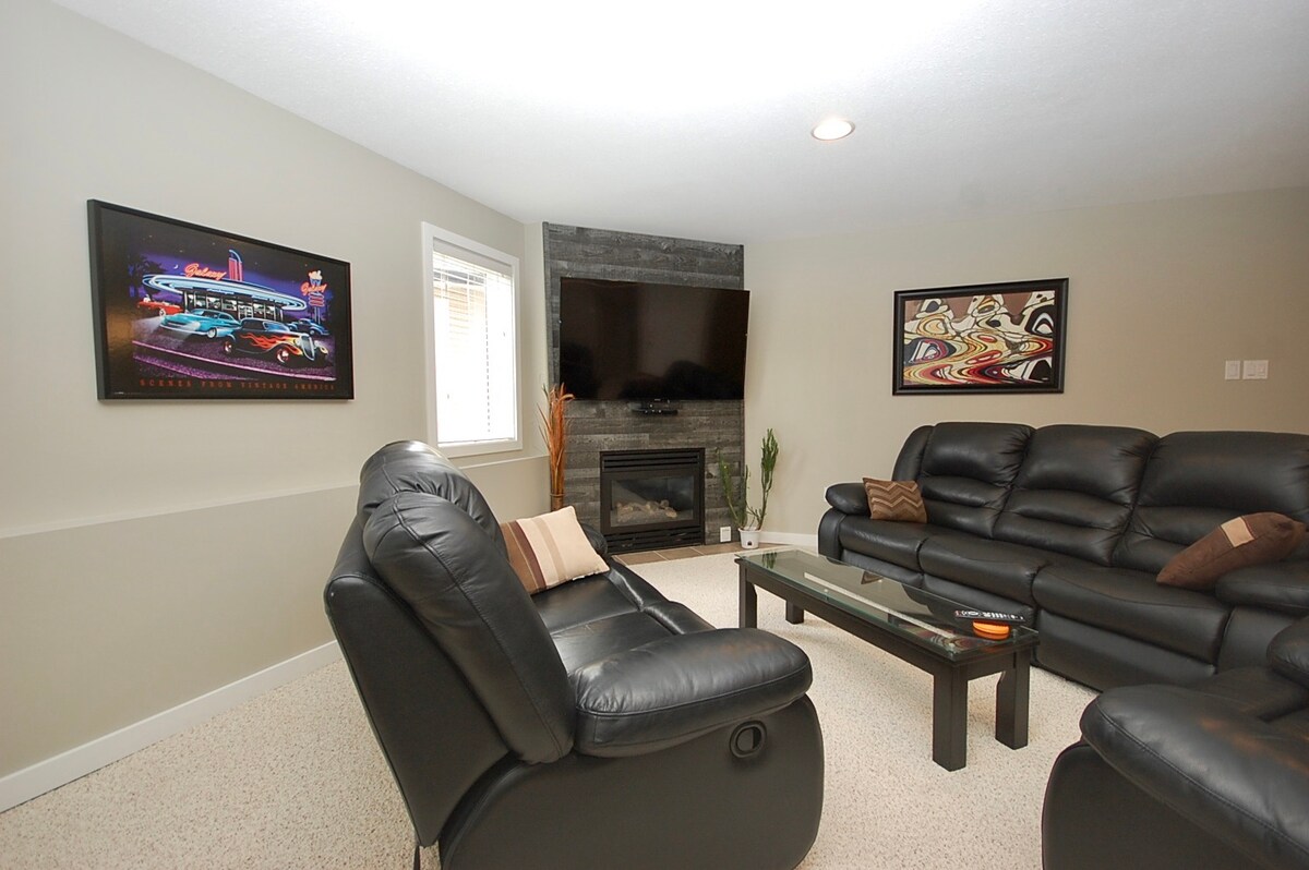 ¡Te damos la bienvenida a The Hat House! Nuestro moderno y luminoso apartamento en la planta baja (plaza de aparcamiento individual) está listo con todas las necesidades y algunos extras para garantizar que tengas una visita sin problemas. Elige entre una lujosa cama queen de espuma viscoelástica o una espaciosa cama tamaño king. Convenientemente situado cerca del centro comercial, Tim Horton's, Starbucks, Wal-mart, Save on Foods, Sobeys. Fácil acceso a la autopista Trans Canada y a la universidad. Relájate en el sofá eléctrico de cuero reclinable junto a una acogedora chimenea. Bonificación: ¡Lavandería en la habitación!