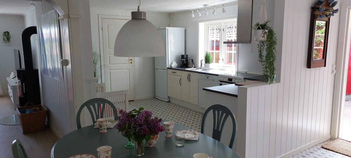 Anexo/casa pequeña a poca distancia a pie del mar (750 metros) y del centro de la ciudad de Sandefjord (900 metros). La casa contiene un pequeño dormitorio con ventana y cama doble de 160 cm. Sala con cocina pequeña y baño nuevo con ducha, bañera e inodoro. La sala de estar tiene un sofá cama que puede ser utilizado por dos niños. El piso inferior está fuera de uso cuando se alquila. Es posible estacionar en la propiedad. El césped frente al anexo puede ser utilizado por el inquilino. Lamentablemente, no se permiten mascotas.