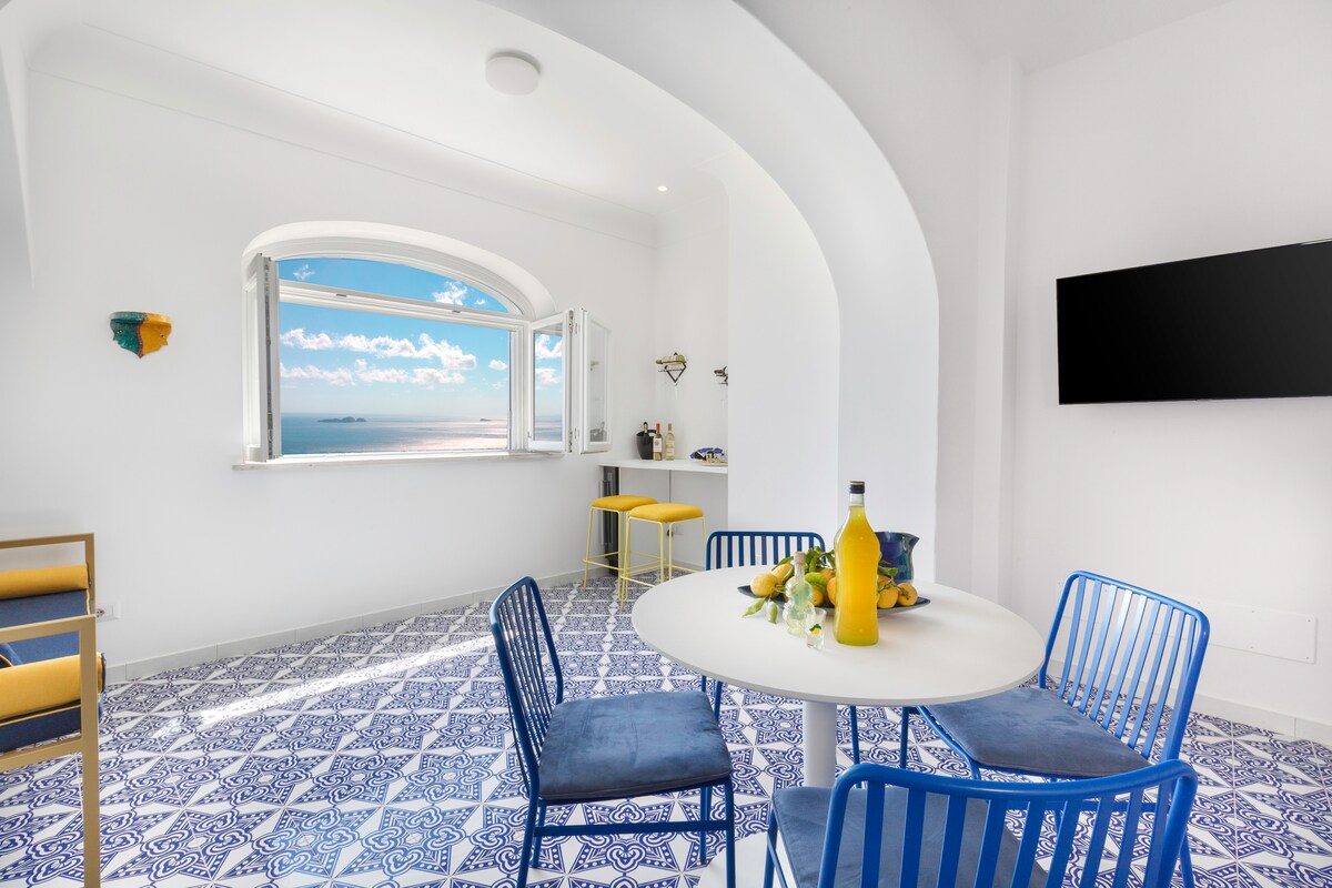 Mareluna es una casa encantadora en la costa de Amalfi. Ofrece impresionantes vistas panorámicas al mar e interiores elegantes con detalles como vigas de castaño, azulejos tradicionales y comodidades como aire acondicionado y televisores inteligentes. Toques únicos, como baños renovados con piedra vista y un lavabo de 200 años de antigüedad, añaden carácter. La propiedad también cuenta con una terraza y un patio, ideales para disfrutar del impresionante paisaje costero y cenar al aire libre.