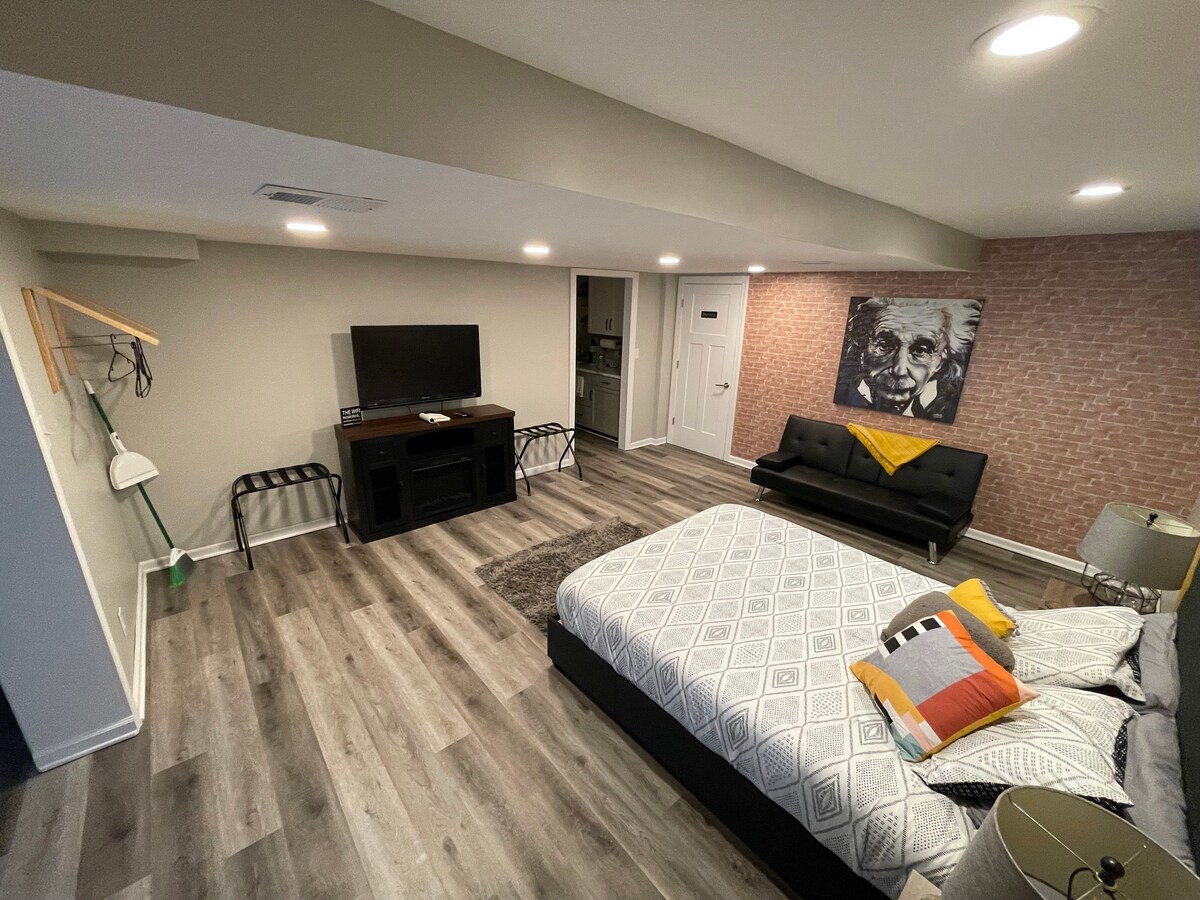 Este es un divertido espacio de 1000 pies cuadrados que es muy moderno y nuevo. Solo se utiliza para huéspedes, así que decidí publicar un anuncio en Airbnb. Esta es una vivienda privada y sé que disfrutarás de tu estancia. ¡Gracias por echar un vistazo! Si es necesario, hay un elevador de silla. El espacio tiene una cama tamaño queen y también un sofá cama.