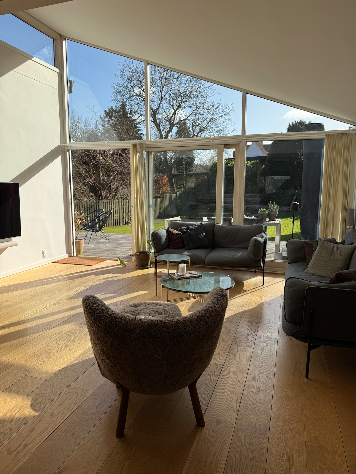 Relájate junto al mar en tu casa de verano a menos de 30 minutos del centro de Copenhague. Tómate una copa afuera en la terraza, en la acogedora sala de estar o en la orangerie. Camina segundos hasta la playa y disfruta de un baño desde tu muelle privado, compra un helado de "Mikkelborg Ice" del parque de playa. Disfruta de una noche relajante por dentro o por fuera, con barbacoa de gas, chimenea, internet rápido, arquitectura danesa bellamente diseñada, arte y lee un libro en la biblioteca o ve una película en la pantalla del cine.