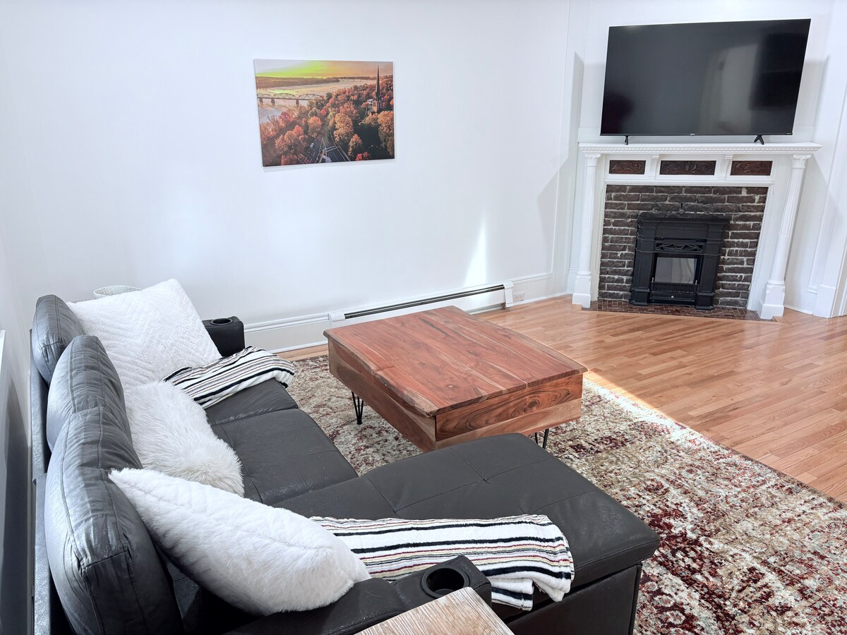 Disfruta de nuestro lujoso bungalow de 3 dormitorios de mediados de siglo. Ubicada en la siempre popular «Hill» en el centro de Fredericton, esta propiedad cuidadosamente seleccionada es la escapada perfecta para ti y hasta otros 5 huéspedes. Disfruta de los hermosos restaurantes y cervecerías de Fredericton cerca. Este barrio tiene un excelente acceso a los diversos senderos para caminar, andar en bicicleta o correr de la ciudad. También estamos cerca de UNB, STU, Grant Harvey Arena y todas tus necesidades de comestibles y compras están a pocos minutos.