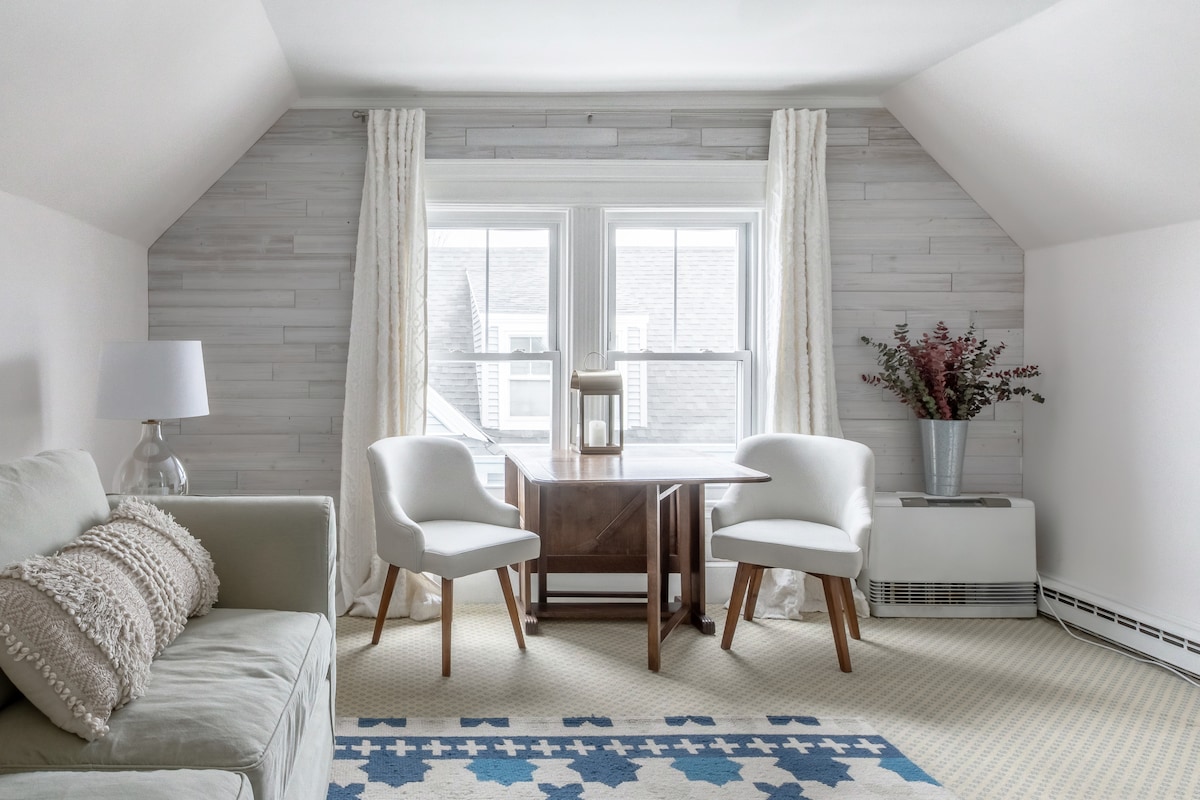 *Covid-Clean* Prepara el desayuno en una cocina luminosa con suelos de madera en esta tranquila casa victoriana. Siéntate en una mesa de comedor tradicional en una habitación de planta abierta con paredes de paneles de madera viva, decoración serena y una alfombra geométrica con toques de azul. Luminoso y espacioso, con toda la privacidad del piso superior. ** NO HAY ESPACIO COMPARTIDO** Este es un apartamento exclusivo de Airbnb sin ningún espacio compartido. Máxima privacidad. Este apartamento se puede alquilar como (1) dormitorio para un máximo de (2) huéspedes o como (2) dormitorios para un máximo de (4) huéspedes. Hay un coste adicional de 50 USD/noche para el dormitorio (2). Confirma que el segundo dormitorio está disponible si estás interesado. Cualquiera de las opciones tiene un baño completo con bañera con patas y ducha. Cocina de servicio completo con fogones, nevera y microondas para tu uso privado. Amplio salón con (2) sofás y pantalla plana. El dormitorio principal, que es muy grande y tiene un colchón tamaño king ultracómodo, también cuenta con televisión por cable. . Tanto la opción de un dormitorio como la de dos dormitorios tienen su propia entrada privada, cocina privada y baño en el tercer piso. No hay espacio compartido con nadie más con las opciones de alquiler de uno o dos dormitorios. Entrada privada. Amplio apartamento de uno o dos dormitorios con cocina completa, baño y sala de estar, así como otros servicios. Estamos disponibles para cualquier pregunta o inquietud, pero como regla general, damos a los huéspedes su privacidad. La casa está a pocos pasos de algunos de los restaurantes más populares de Portland, como Knotted Apron, Woodfords Bar and Grill, Bird and Co.The Treehouse y Elsmere BBQ. No muy lejos de la zona del Puerto Viejo para explorar los mercados de mariscos y las tiendas. Visita el Observatorio de Portland para explorar un faro histórico. Cerca de todo el transporte público y del Aeropuerto Internacional de Portland Aparcar en la entrada es una posibilidad, por favor, pregunta si estás interesado. Hay aparcamiento disponible en la calle, se basa en un sistema par/impar de la dirección de la calle. Debes estacionar en el mismo lado que la fecha sería a las 12:01 a. m. de un día determinado. Te alojas en 32 Lawn Ave.