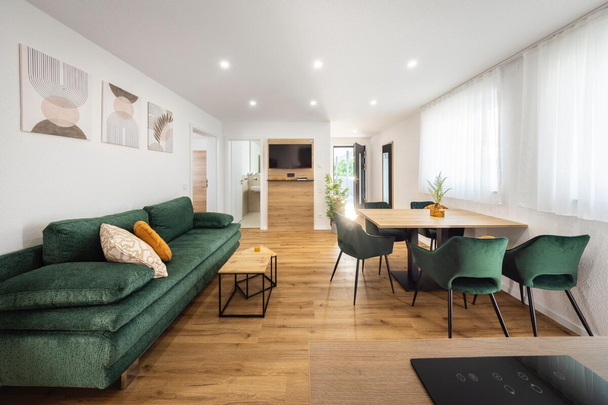 Guest house built in 2015 surrounded by greenery on the grounds of an old mill - Stream behind the house. Wild and romantic. - 10 km from Basel, 5 km from Lörrach, Feldberg 50 min. Good transport links (bus and train) - Families, solo travellers, business people, couples - Pets on request - Two apartments, available to rent together or separately. - Restaurants and shopping facilities in the village - Relaxation and excursions, culture and nature