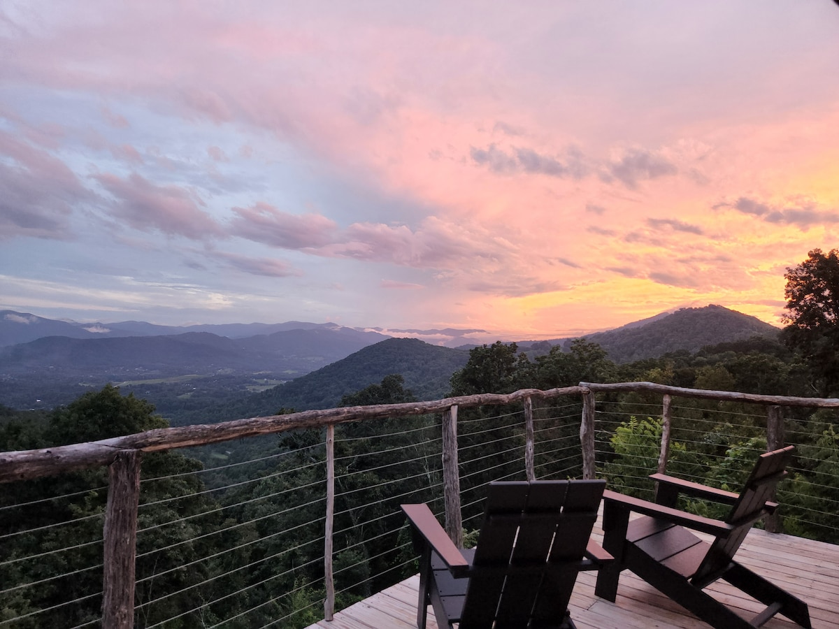 Feel the mountain breeze in this air inspired rustic A-Frame. Atop the ridge, enjoy year-round views of the mountains from the back porch. Hike up Rhododendron Ridge Trail or cozy up by the wood stove with a book. Start a campfire or listen to the sounds of Bee Tree Creek in the hammock. Nightlife, food, coffee and breweries in Asheville or Black Mountain are 15 minutes away. It's an hour to Great Smokey Mountains National Park!