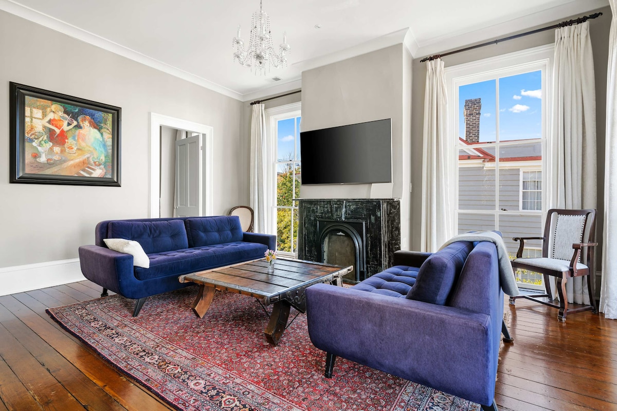 Sumérgete en la vibrante cultura de Charleston desde este elegante y espacioso alquiler vacacional en el histórico barrio de Cannonborough Elliotborough. Diseñada por un diseñador de interiores profesional, esta unidad cuenta con una mezcla única de muebles nuevos y antiguos, hermosas obras de arte y una decoración de buen gusto. Esta joya de diseño ofrece una ubicación inigualable y una experiencia inolvidable en el centro de Charleston.