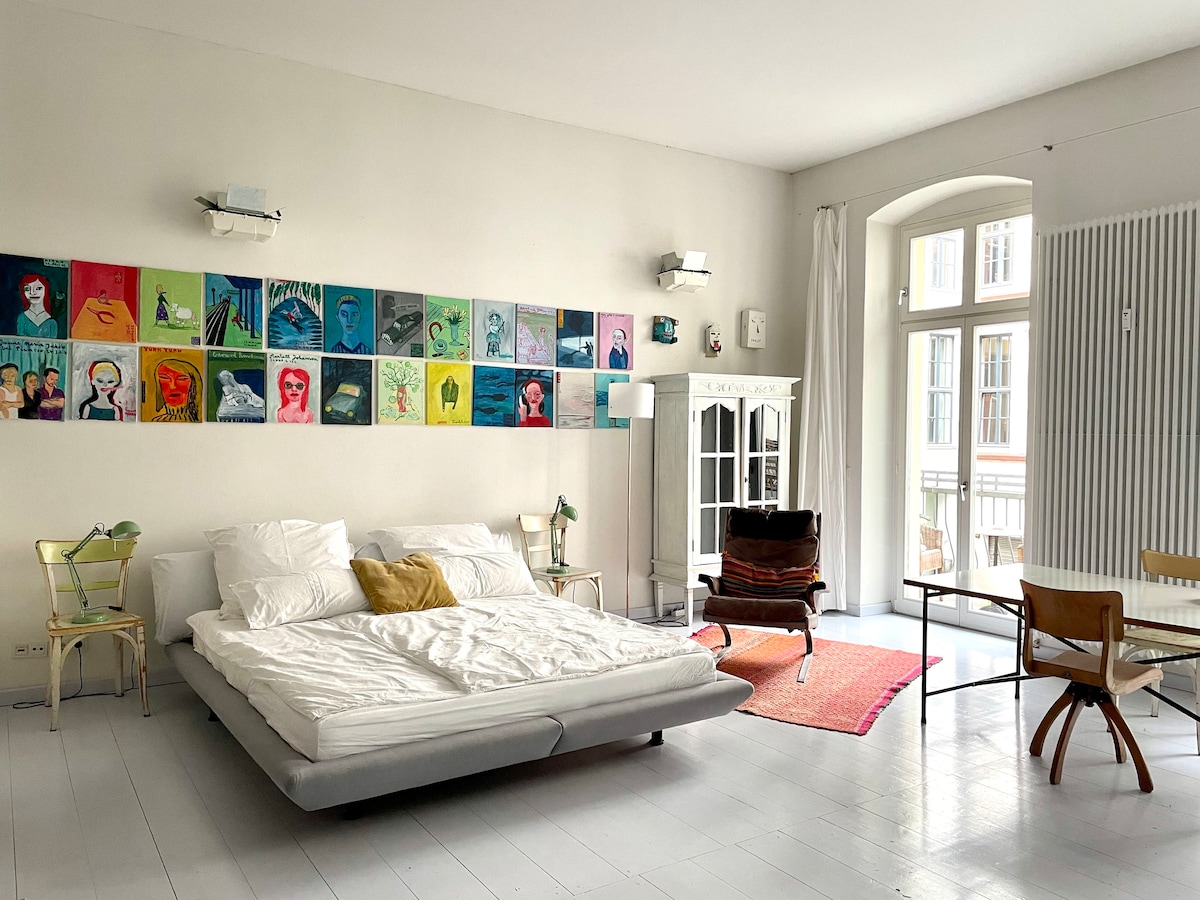 Departamento súper céntrico pero muy tranquilo, totalmente reformado y bastante espacioso con un toque artístico para tu estancia muy especial. Cocina y baño de alta gama totalmente equipados con gran ducha de efecto lluvia. Balcón orientado al suroeste. Cama de diseño súper cómoda y tamaño king, así como un acogedor sofá para tu máxima recuperación después de un día en Berlín. Isla de los Museos, la Puerta de Brandeburgo, los cafés, restaurantes favoritos de Mitte, etc. y la estación de tren Friedrichstr están a un tiro de piedra. 1er piso con ascensor.