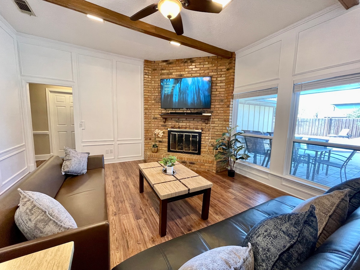 Alójate en el corazón ecléctico del este de Dallas, en el distrito de conservación de Hollywood Santa Mónica. Casa de lujo remodelada de 3 dormitorios y 2 baños con piscina de agua salada, spa, patio y gran chimenea al aire libre con TV. Televisores en todas partes para ver todos los partidos y antes del partido y espacio para todos. Base ideal para la Copa Mundial de la FIFA 2026 a solo 22 millas (unos 29 minutos) del estadio AT&T en Uber para un fácil acceso al juego. COPA MUNDIAL DE LA FIFA 2026
