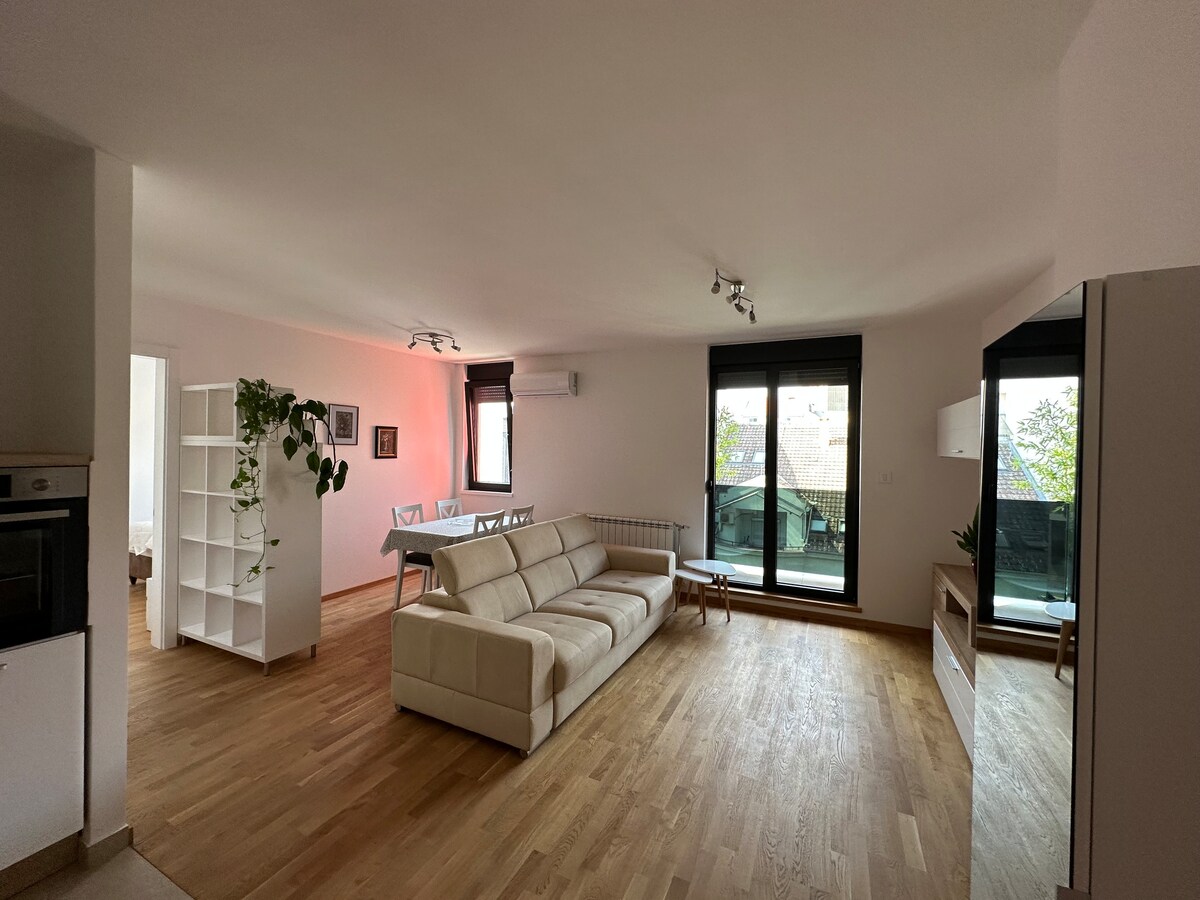Sé uno de los primeros huéspedes en nuestro apartamento de 35 metros cuadrados (375 pies cuadrados) en una ubicación estupenda. La calle tranquila con fachadas rústicas y tilos te dará la oportunidad de sentir el antiguo espíritu de Novi Sad. Estarás situado en una excelente ubicación, cerca de todos los lugares que desees visitar, sin importar si te hospedas por negocios o por placer. El apartamento está a solo 600 metros (5 minutos) a pie de la plaza central de la ciudad. Idiomas hablados: inglés, serbio.