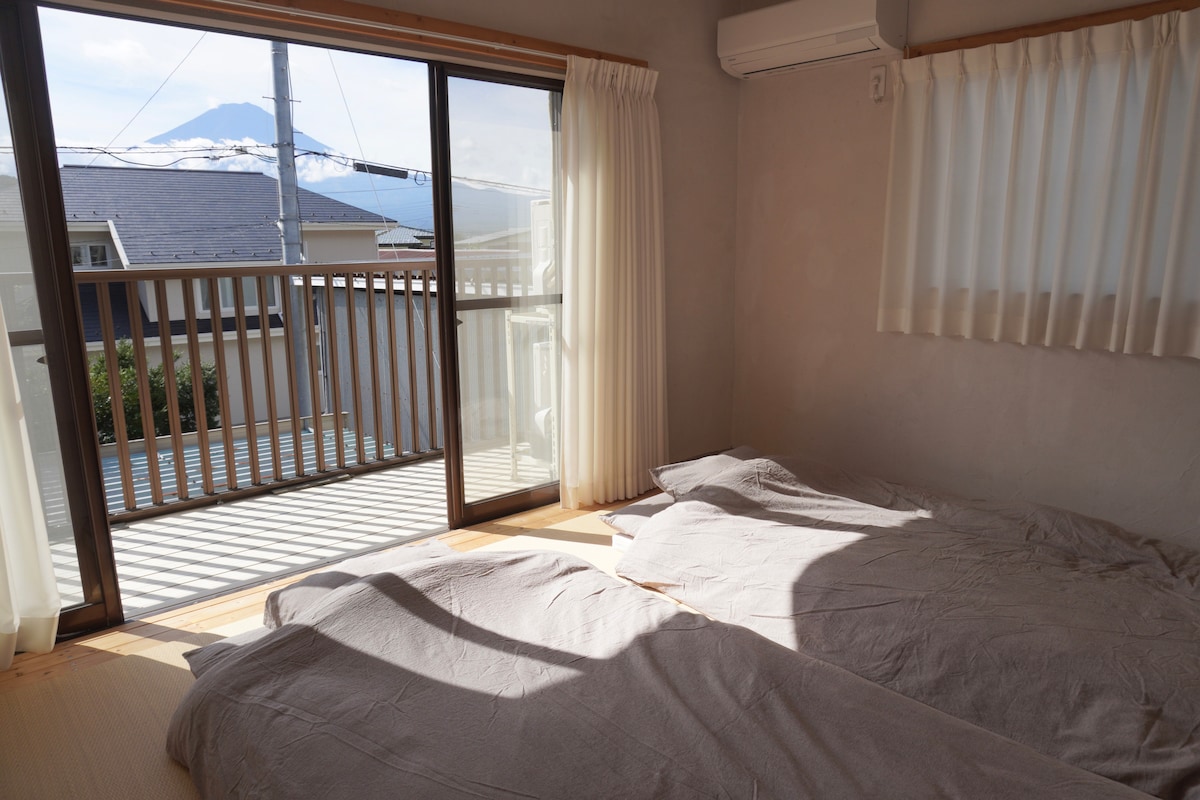 大きな窓から富士山を楽しむ、暮らすように泊まれる貸切新築宿!シモンズベットで極上の眠りを。