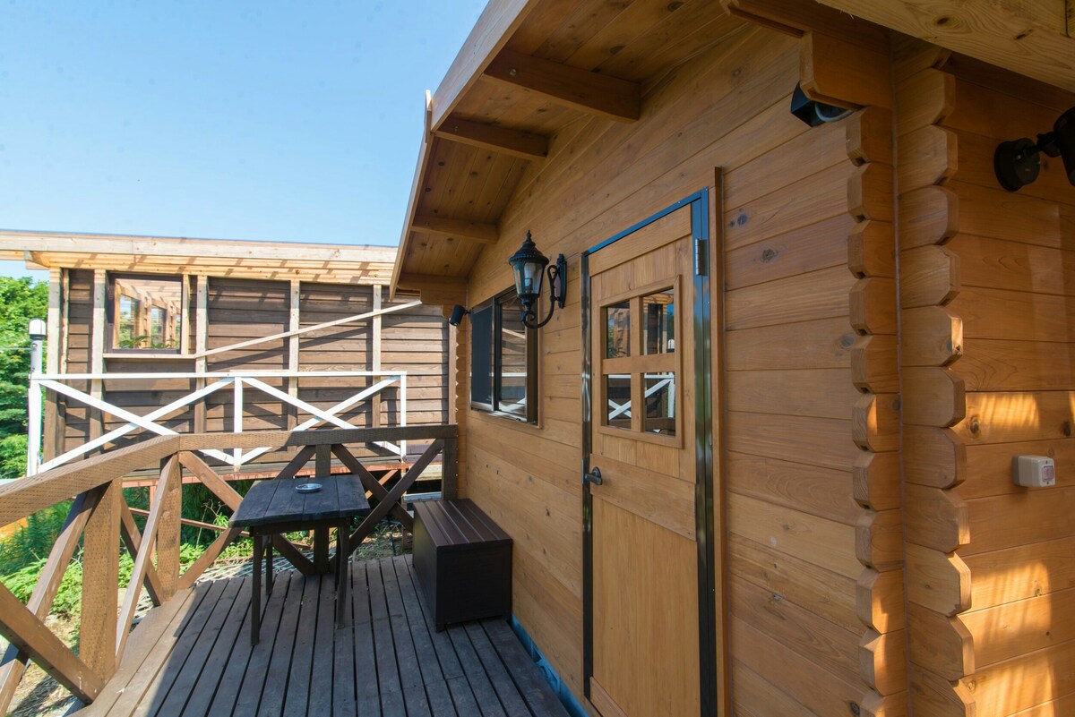 ¡Haz una barbacoa en una cabaña de madera en una colina rodeada de naturaleza, mar y vegetación! [Cabaña de madera Djabu]