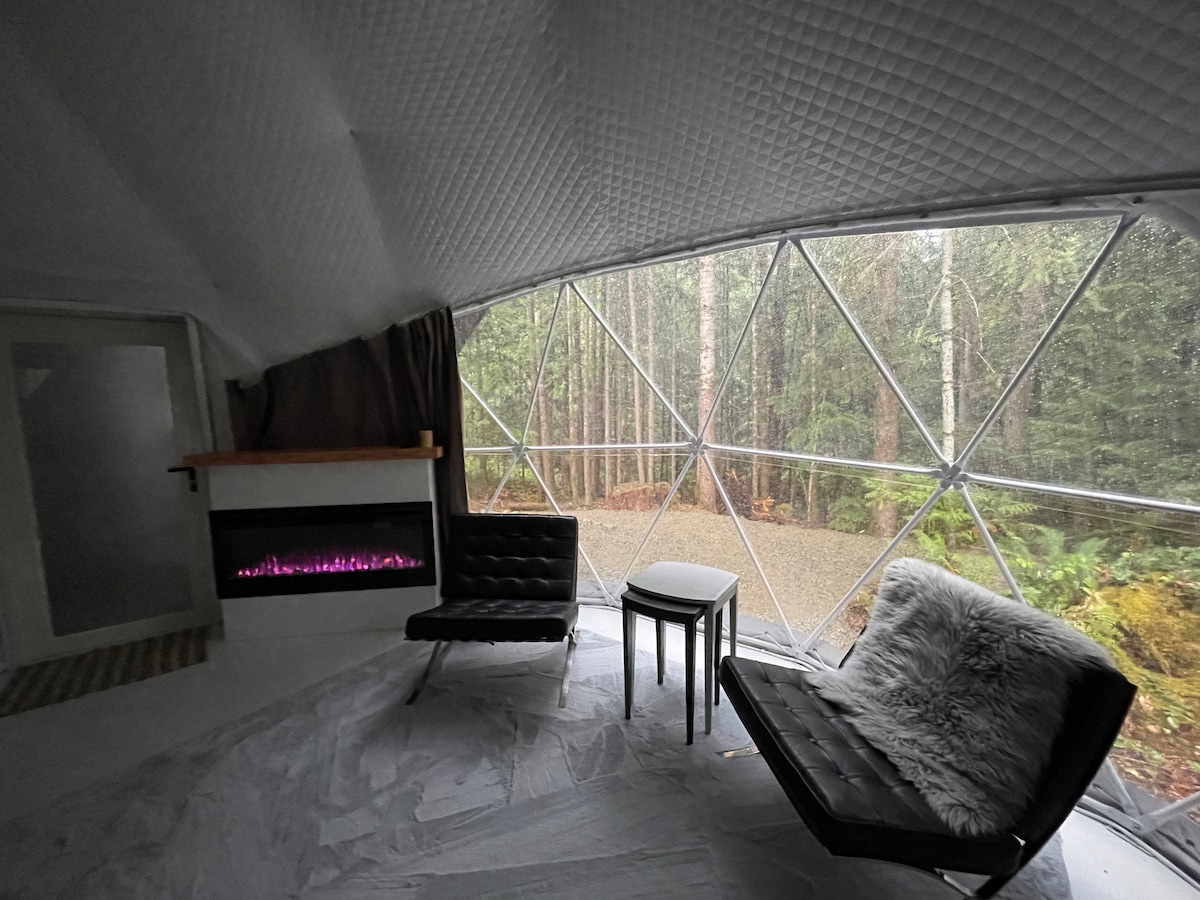 Oasis es una cúpula geodésica de 20' de diámetro ubicada en el bosque en el lago Cowichan, BC. Experimenta la belleza de la naturaleza con las comodidades de un hotel boutique. Dentro de la cúpula se encuentra tu cocina americana, chimenea eléctrica, acogedora sala de estar, wifi y una amplia colección de DVD. Junto a la cúpula encontrarás tu propio baño de 3 piezas y una cocina cubierta al aire libre. Disfruta de una fogata de propano y de tu propio jacuzzi privado para 2 personas para disfrutar del ambiente de la noche. ¡Oasis es una experiencia verdaderamente única!