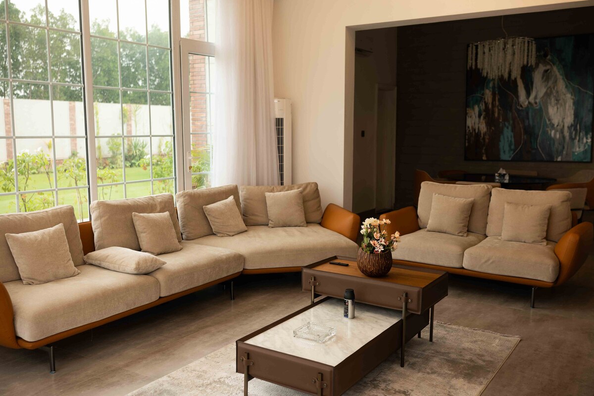 Villa Nawab is a serene, stylish farmhouse retreat just 12 km from Karachi Airport and only 15 minutes from DHA via the new Shahrah-e-Bhutto. Surrounded by nature and set 7 km from Malir Cantt, it’s perfect for families, photoshoots, events, or relaxing getaways. Enjoy spacious lawns, a private pool, modern amenities, and peaceful indoor–outdoor living—your ideal escape for gatherings or a quiet staycation.