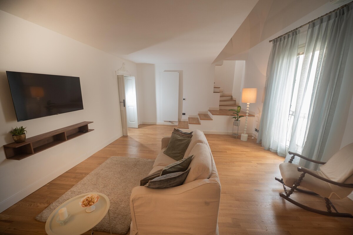 MStudio is a modern 80sqm open-space Loft located in a newly built stately condominium. It consists of a large living room with kitchen, microwave, fridge, oven, large 3-seater sofa with 55-inch TV, dolby surround system, relaxation office area with notebook available and 1GB fiber optic internet, bathroom with shower, hairdryer and necessaire, double bedroom with new memory foam mattress. There is also a cot for children. Free public parking.