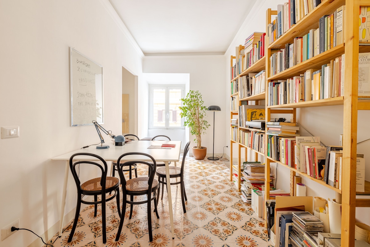 Para vosotros, una experiencia única: un servicio exclusivo para que os sintáis como en casa, con las comodidades que os merecéis. Vuestra residencia se encuentra en el corazón del Janículo, en una calle residencial. Inmersa en un contexto de elegancia, la zona está salpicada de cafeterías refinadas, heladerías, tabernas, bares de vinos y mercados. El edificio histórico, muy concurrido, alberga tu alojamiento en la planta baja. Un rincón exclusivo con el lujo de una terraza para relajarse en una ubicación tranquila, cerca de todo.